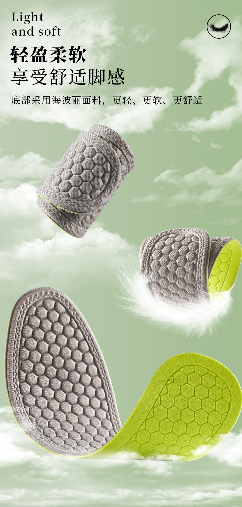 pu踩屎感鞋垫男女超软久站不累运动高弹缓震吸汗防臭透气除臭留香