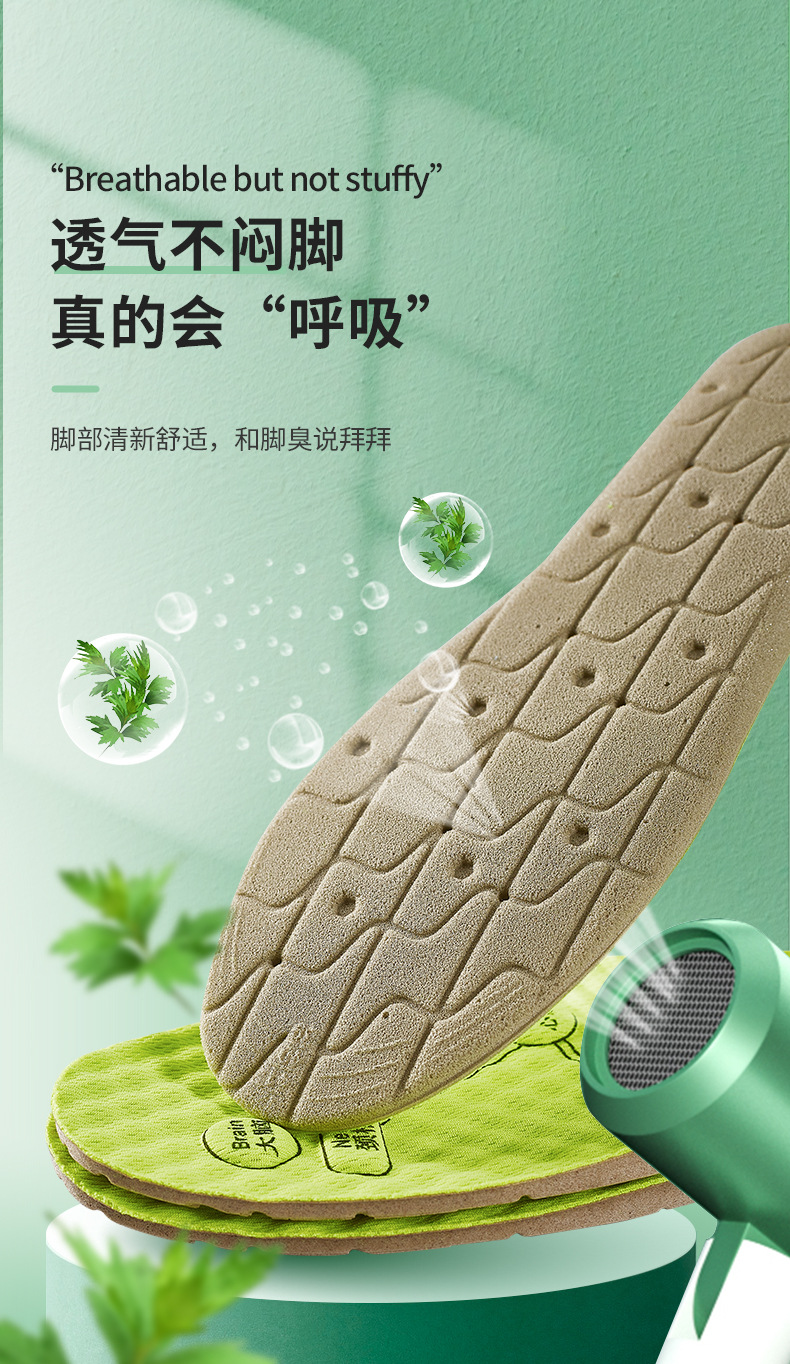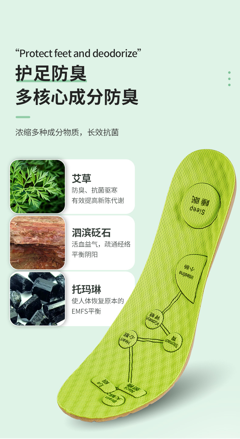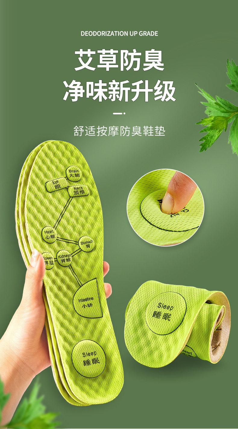 艾草防臭鞋垫军训男女透气夏季除湿吸汗鞋垫久站不累运动按摩鞋垫