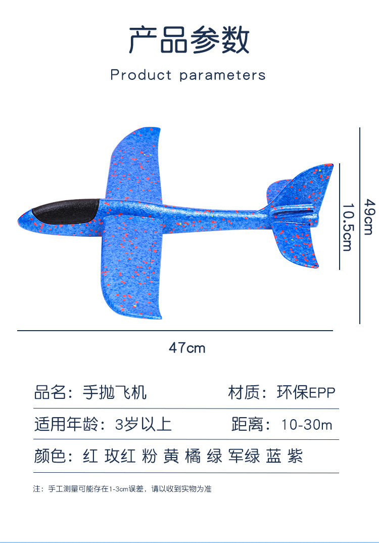 大号EPP泡沫滑翔机手抛回旋飞机适合14岁以上航模
