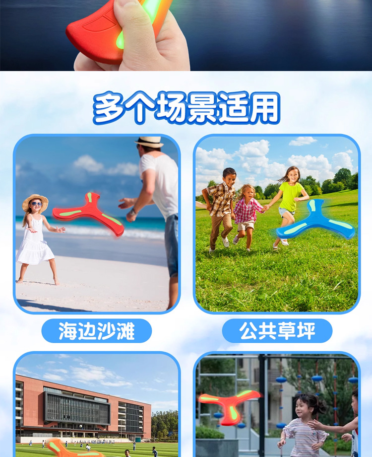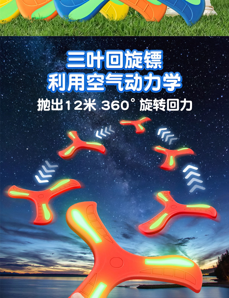 儿童回旋镖大玩具飞回来摔不烂软飞盘玩具软胶三叶互动手抛