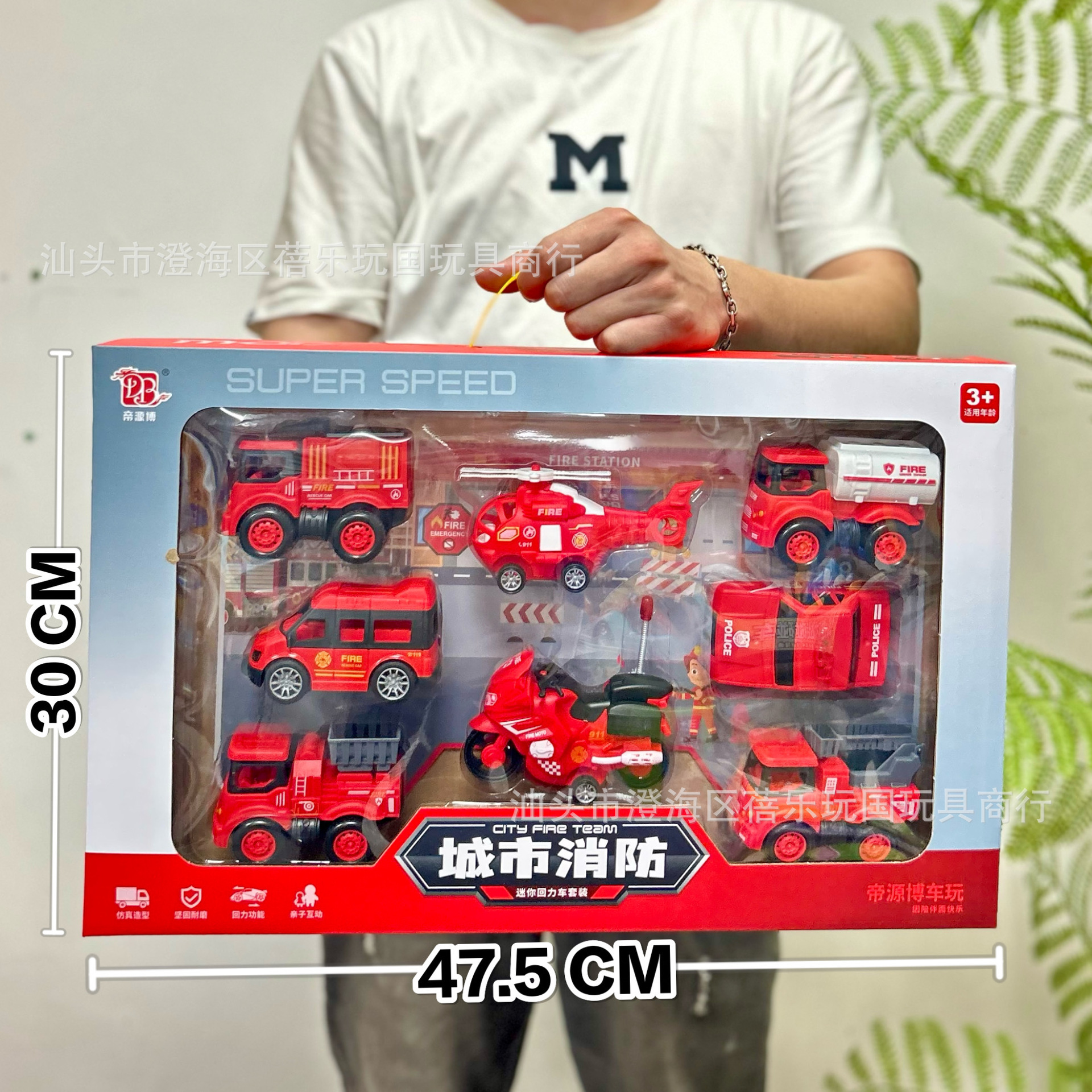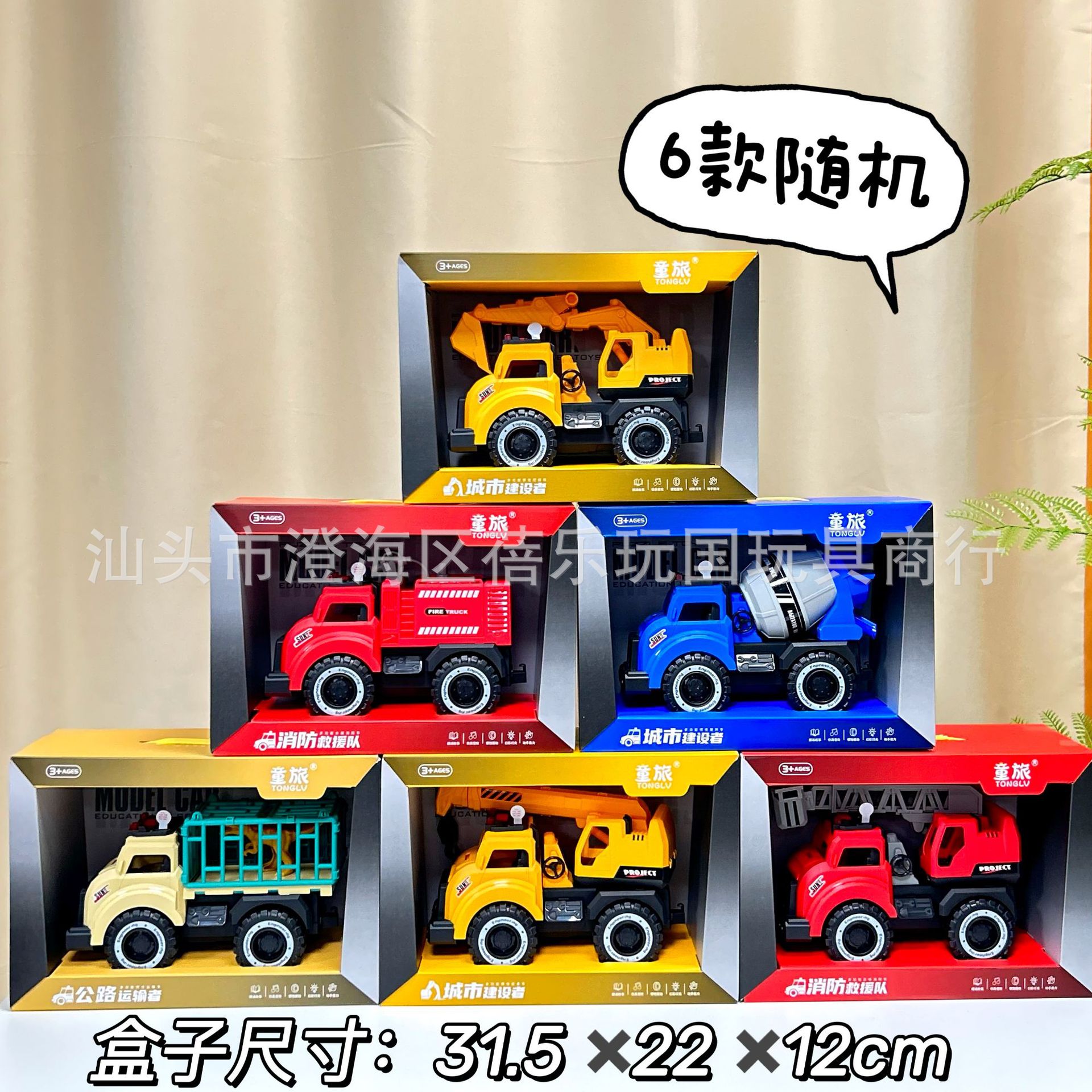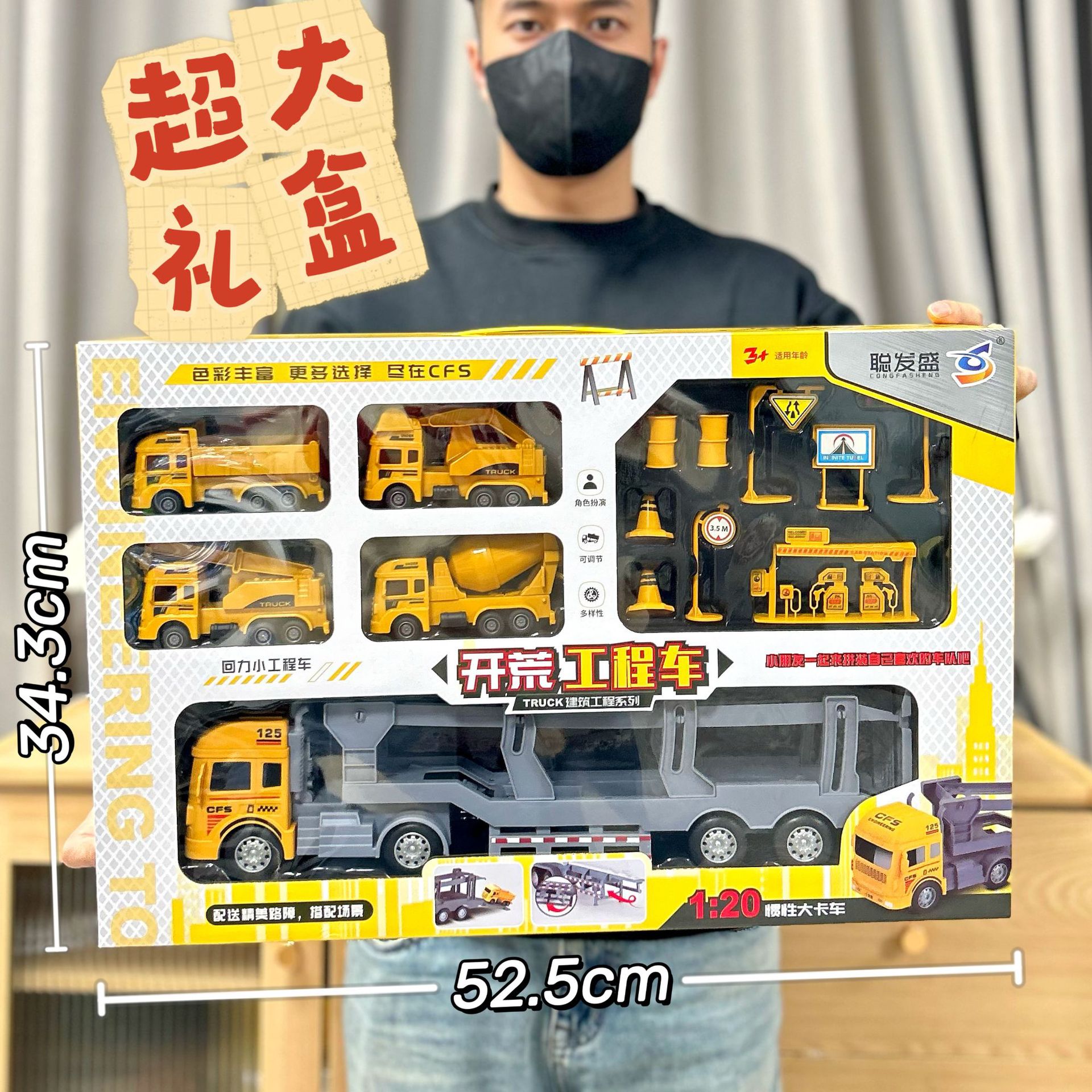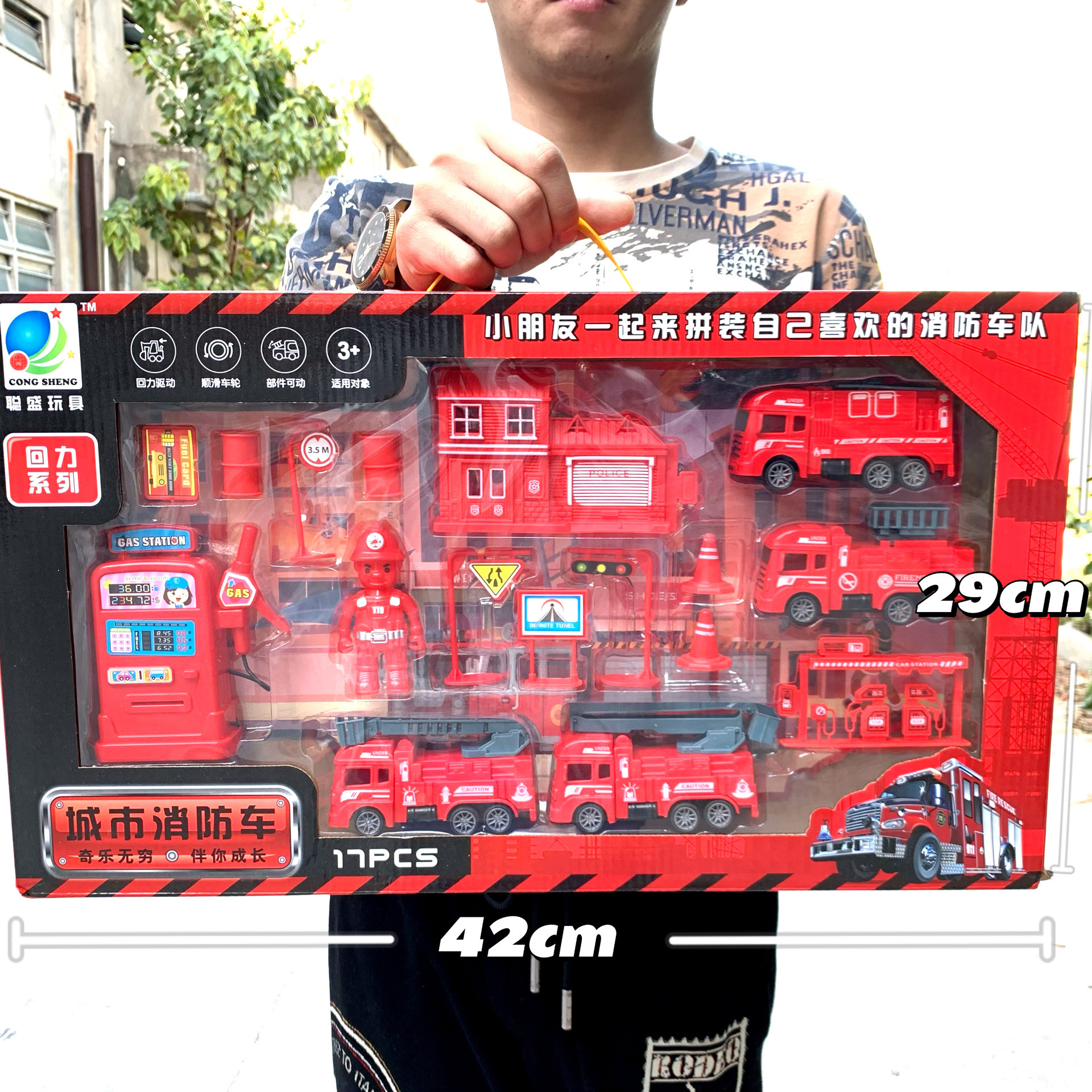 回力惯性工程车大礼盒套装挖掘机消防车套装男孩汽车玩具地摊