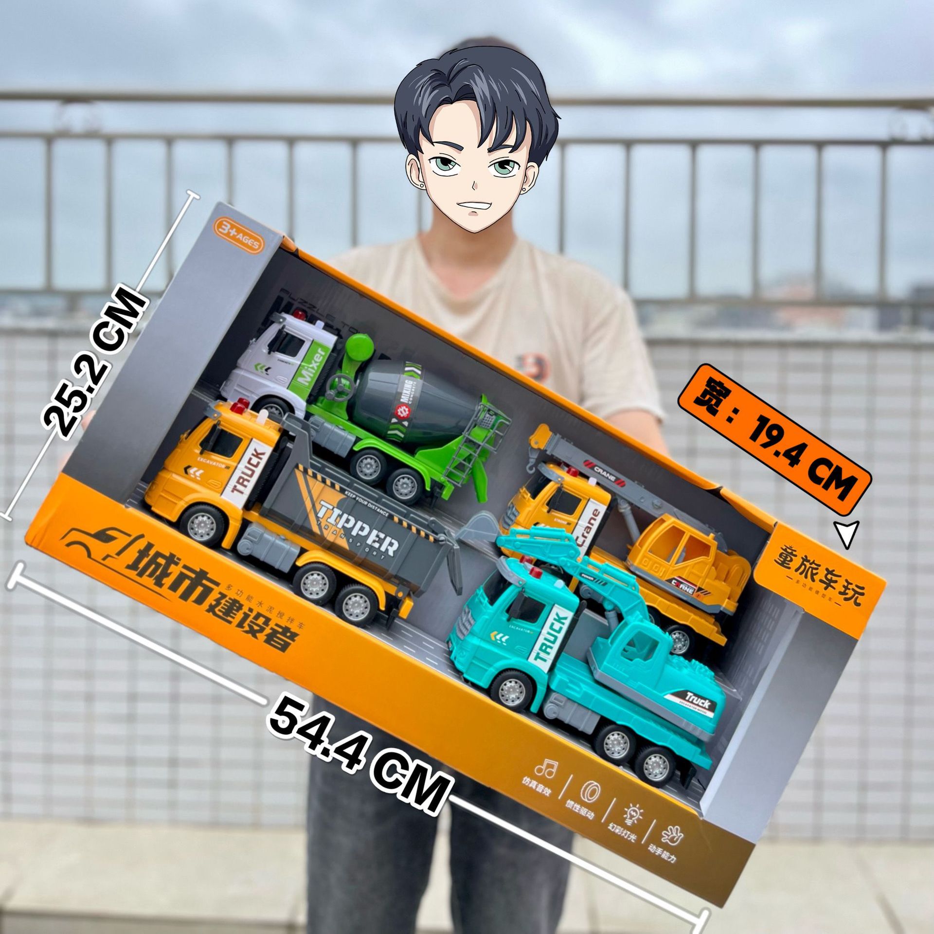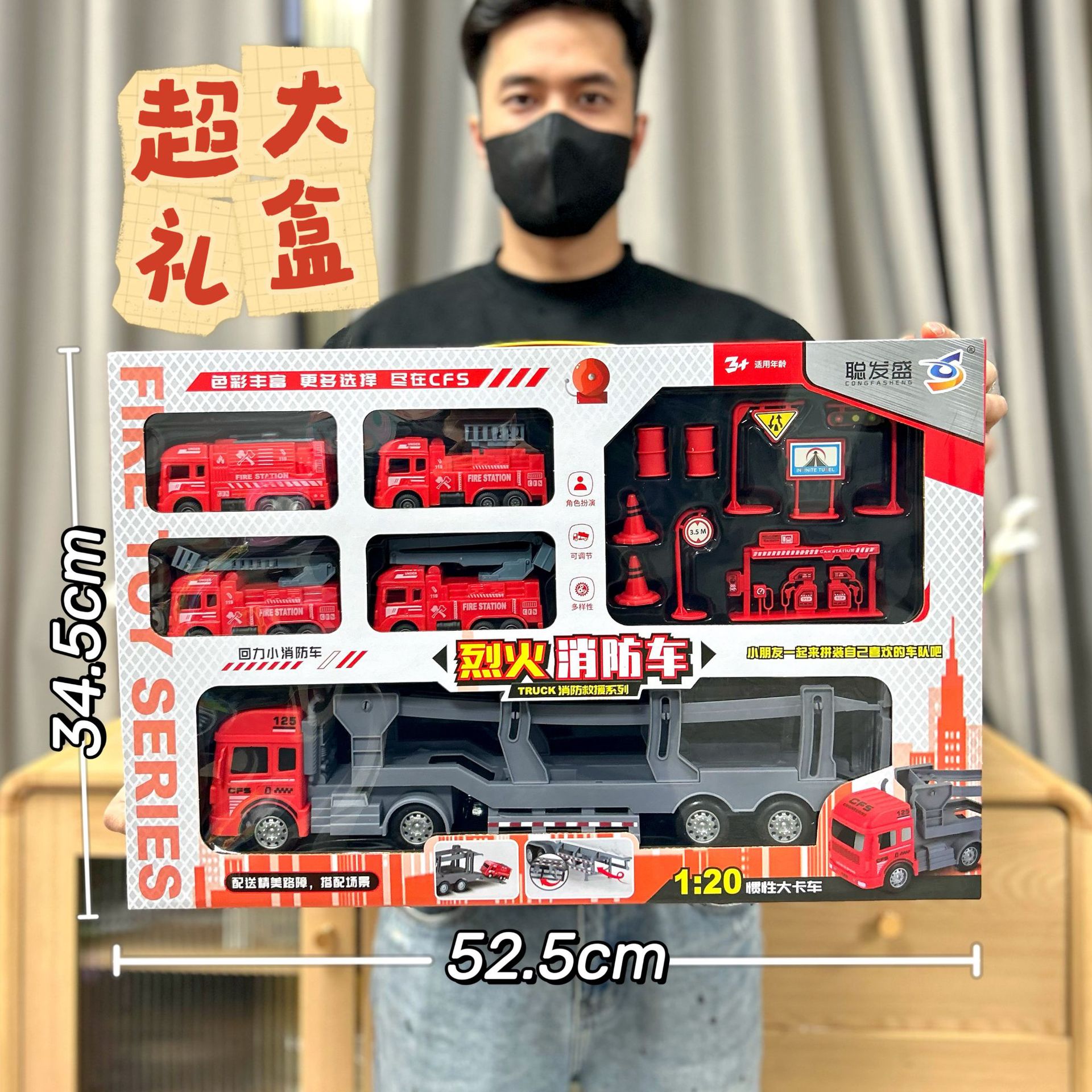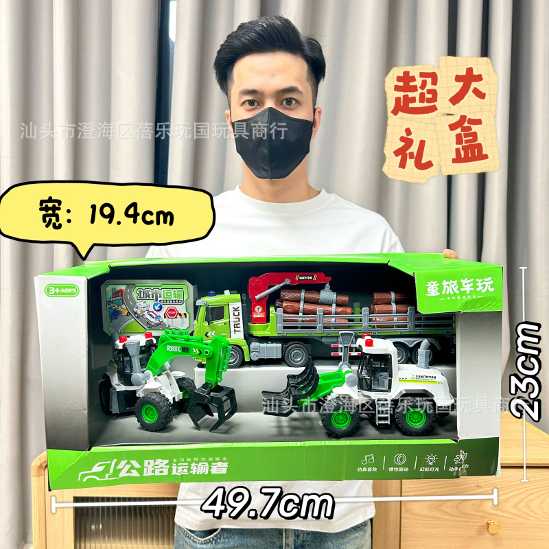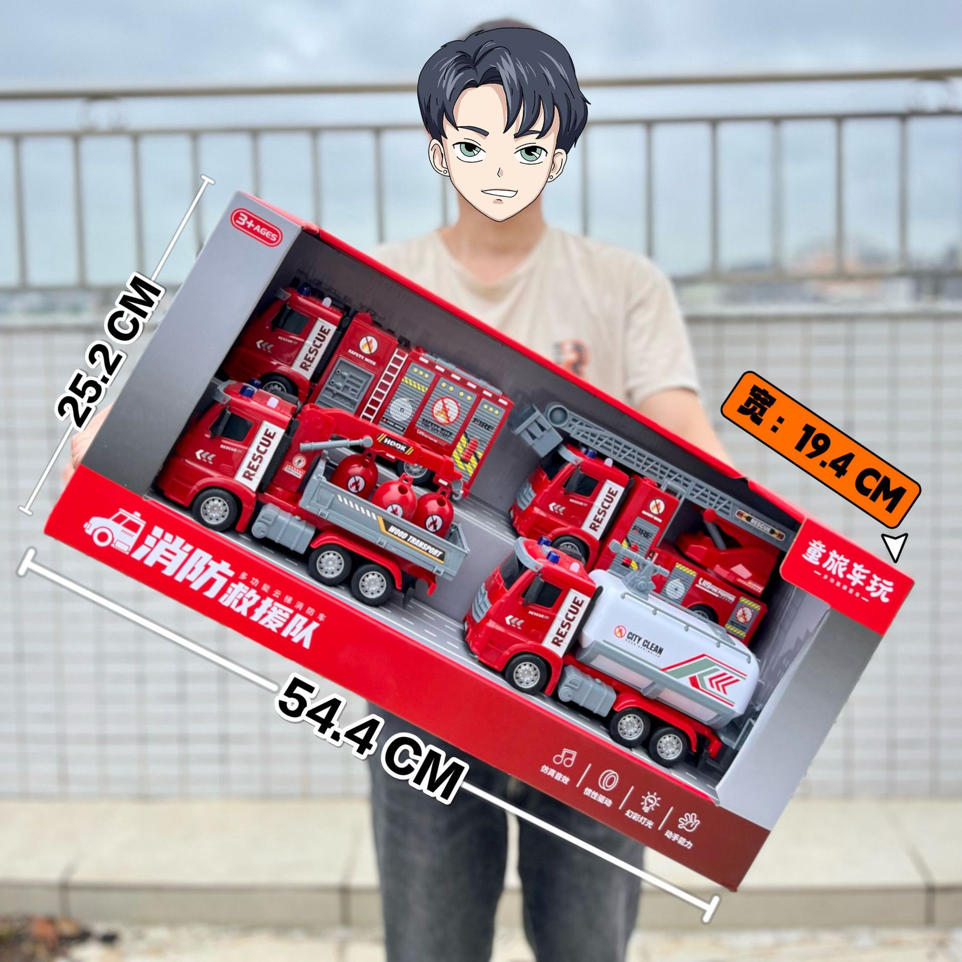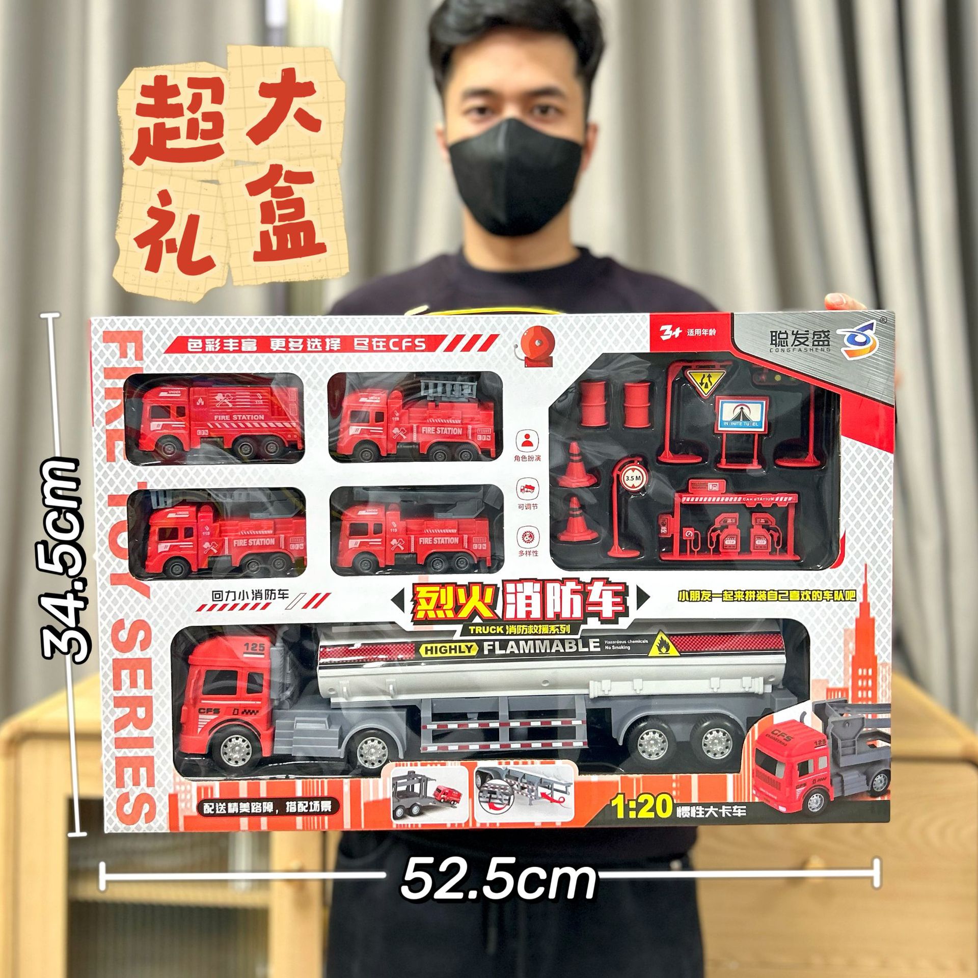 回力惯性工程车大礼盒套装挖掘机消防车套装男孩汽车玩具地摊