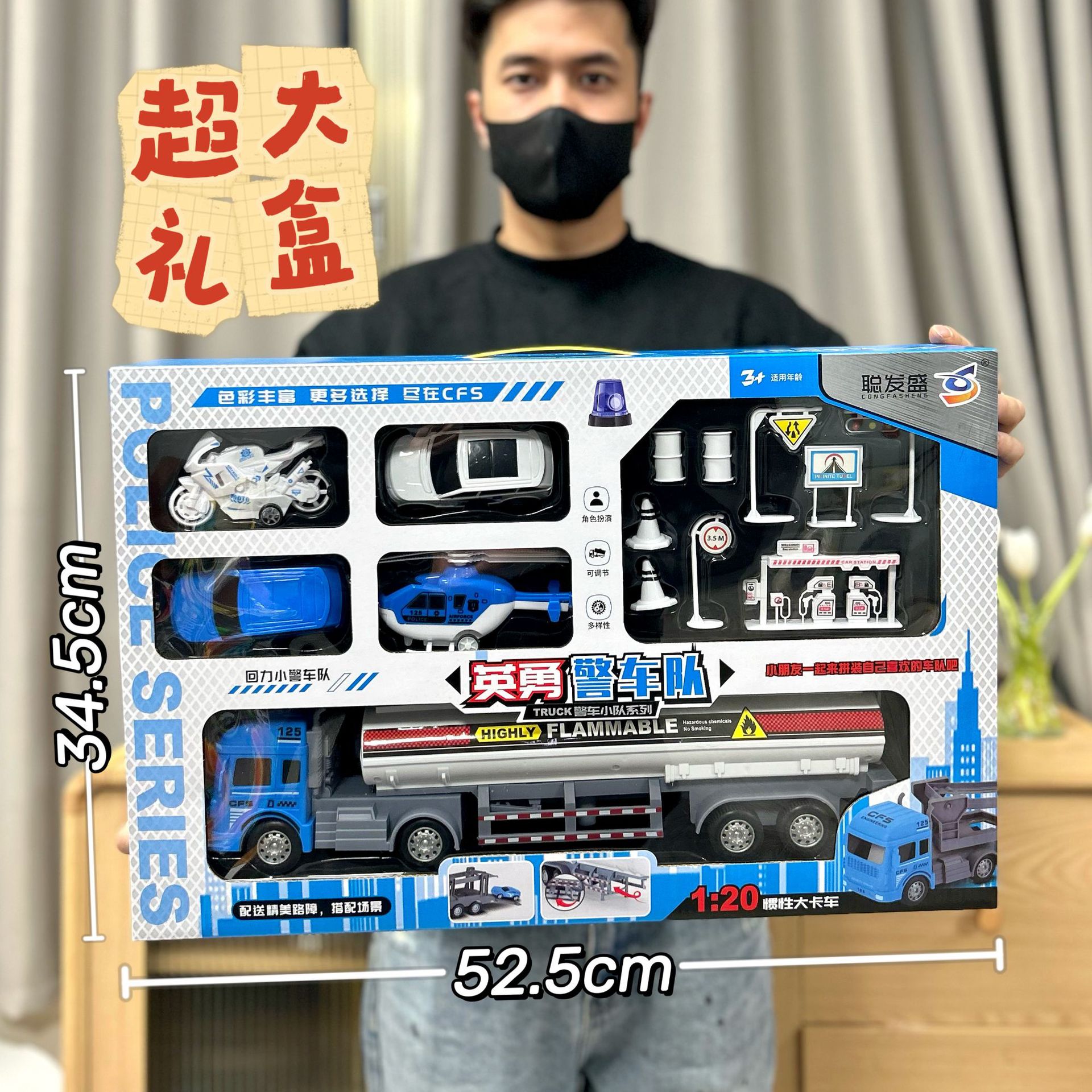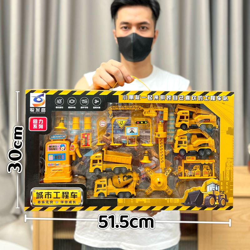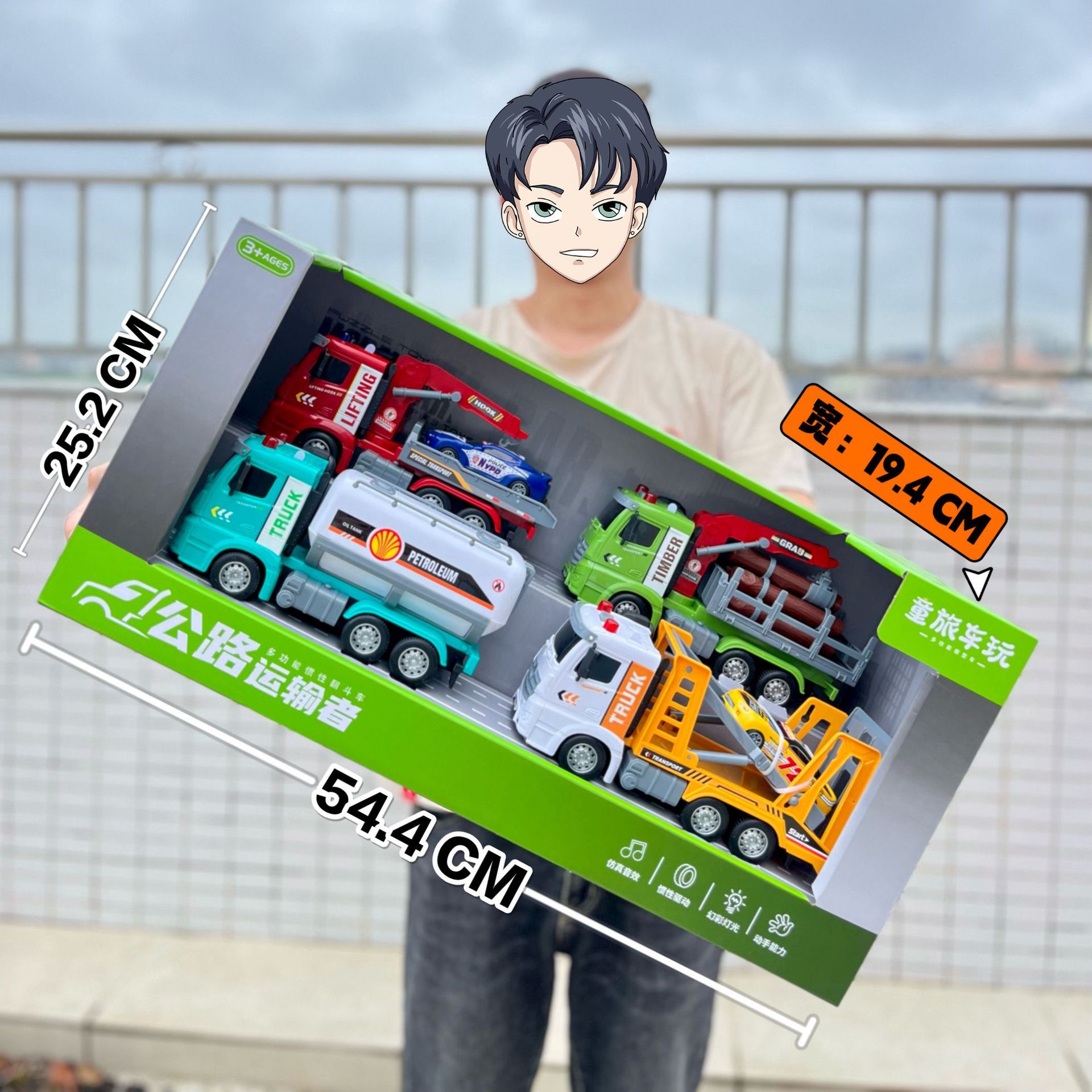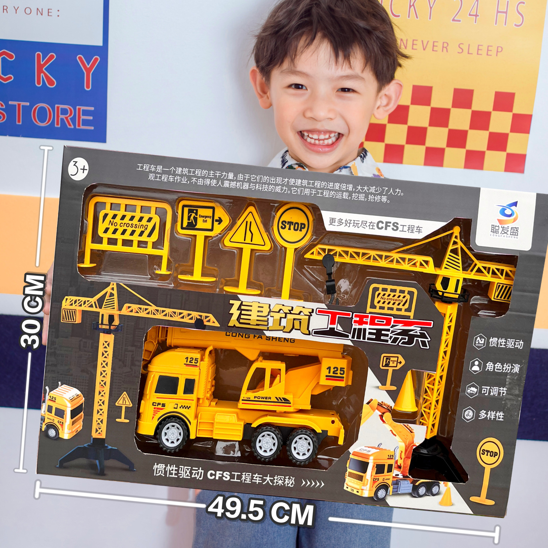 回力惯性工程车大礼盒套装挖掘机消防车套装男孩汽车玩具地摊