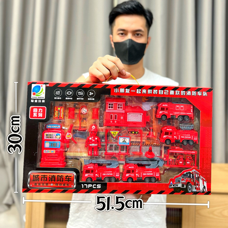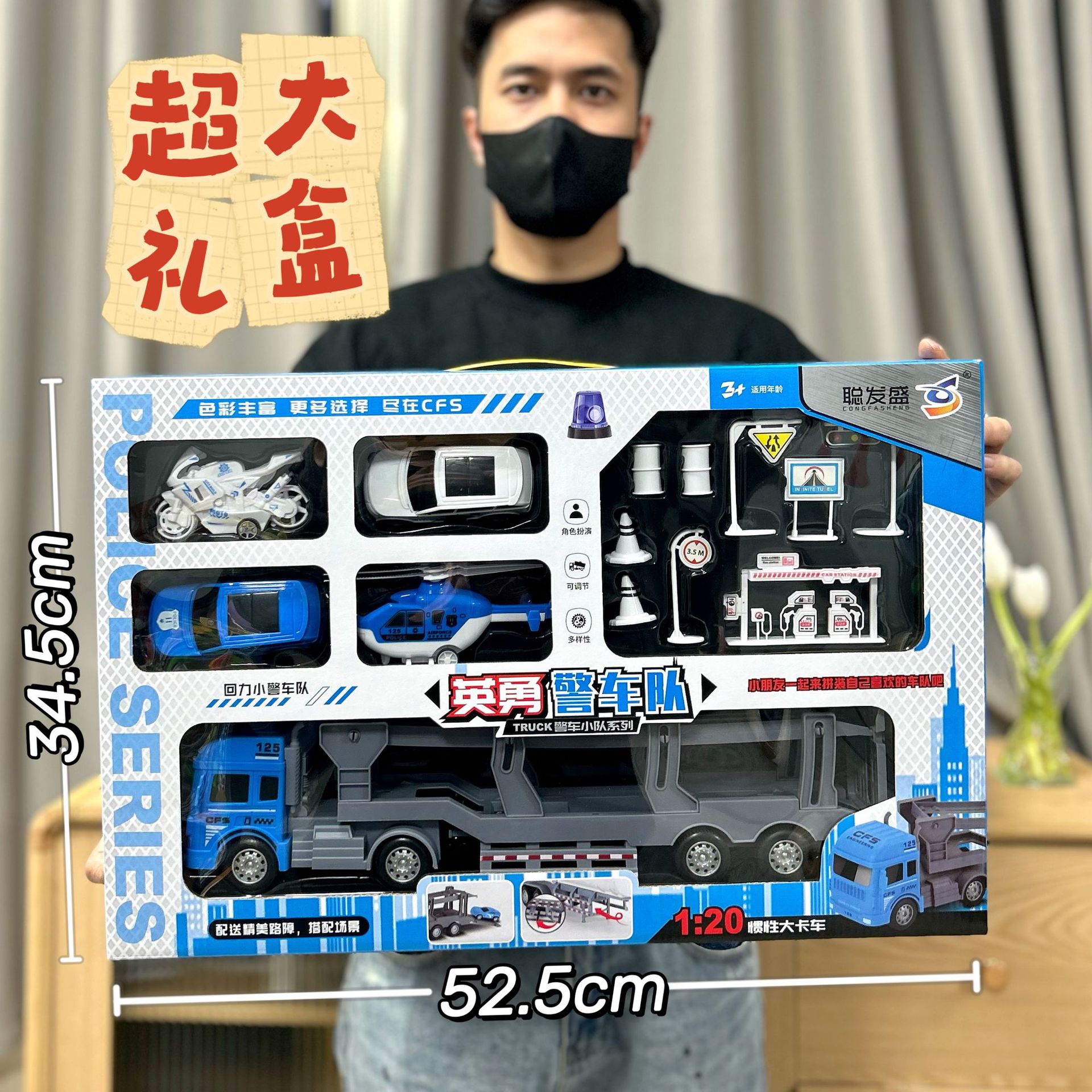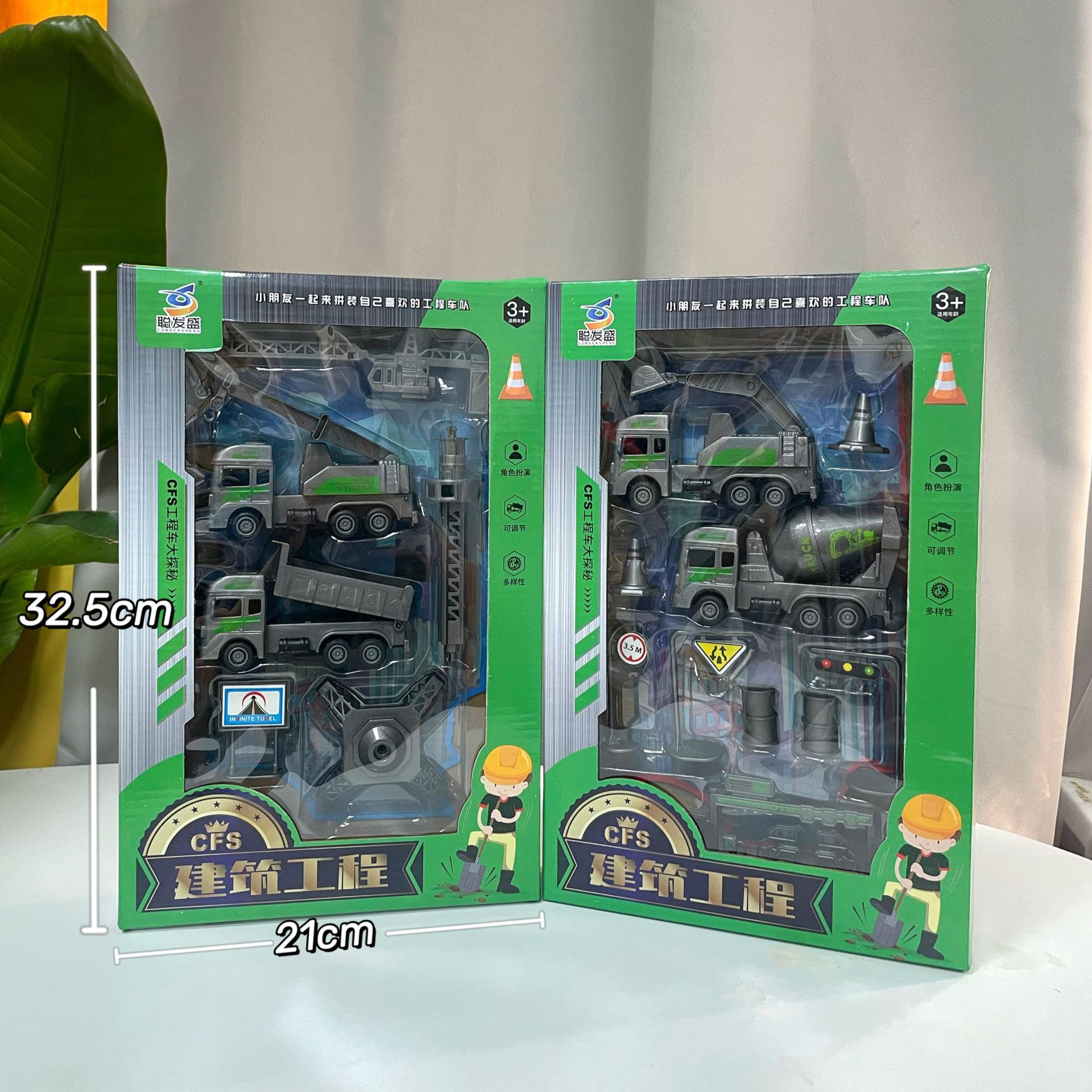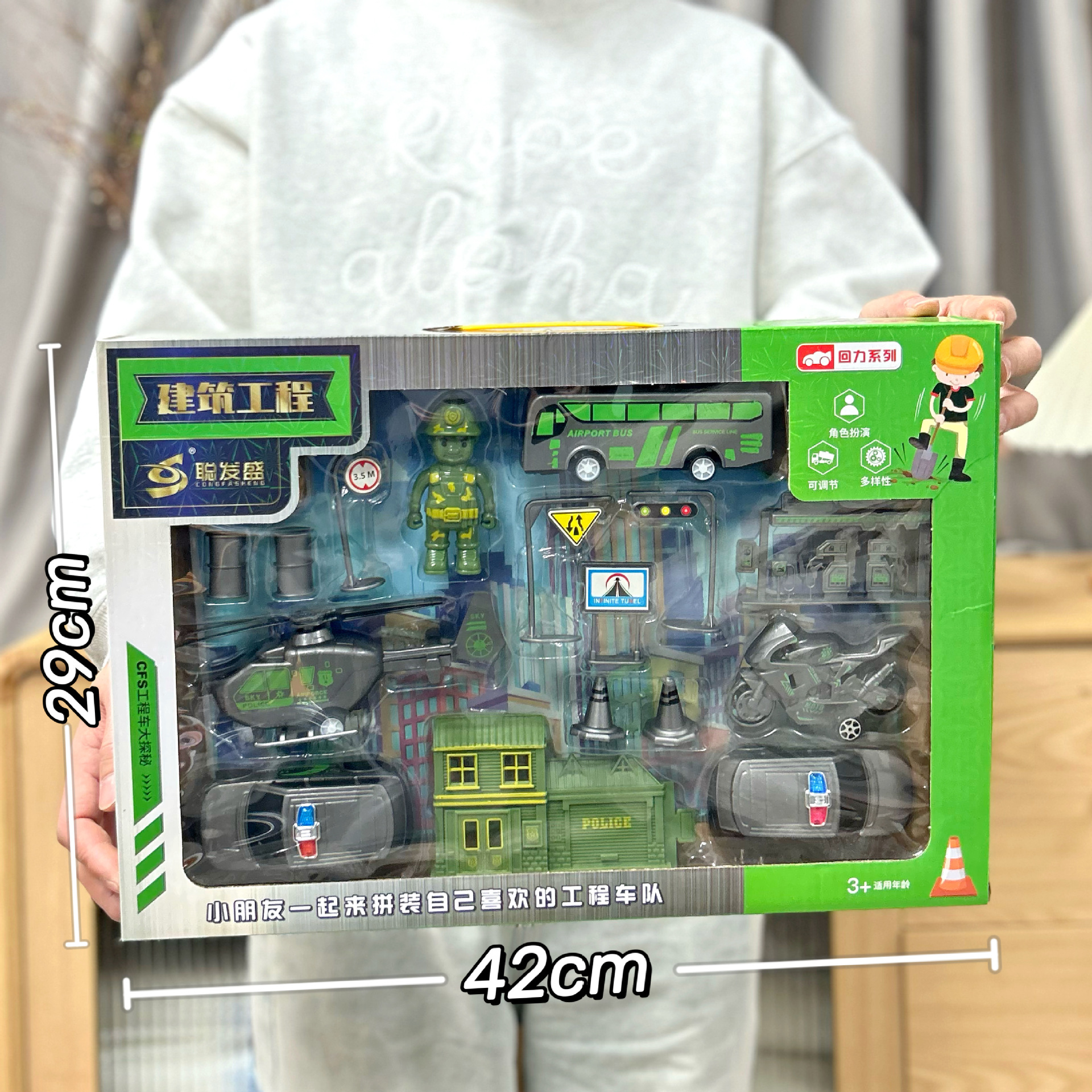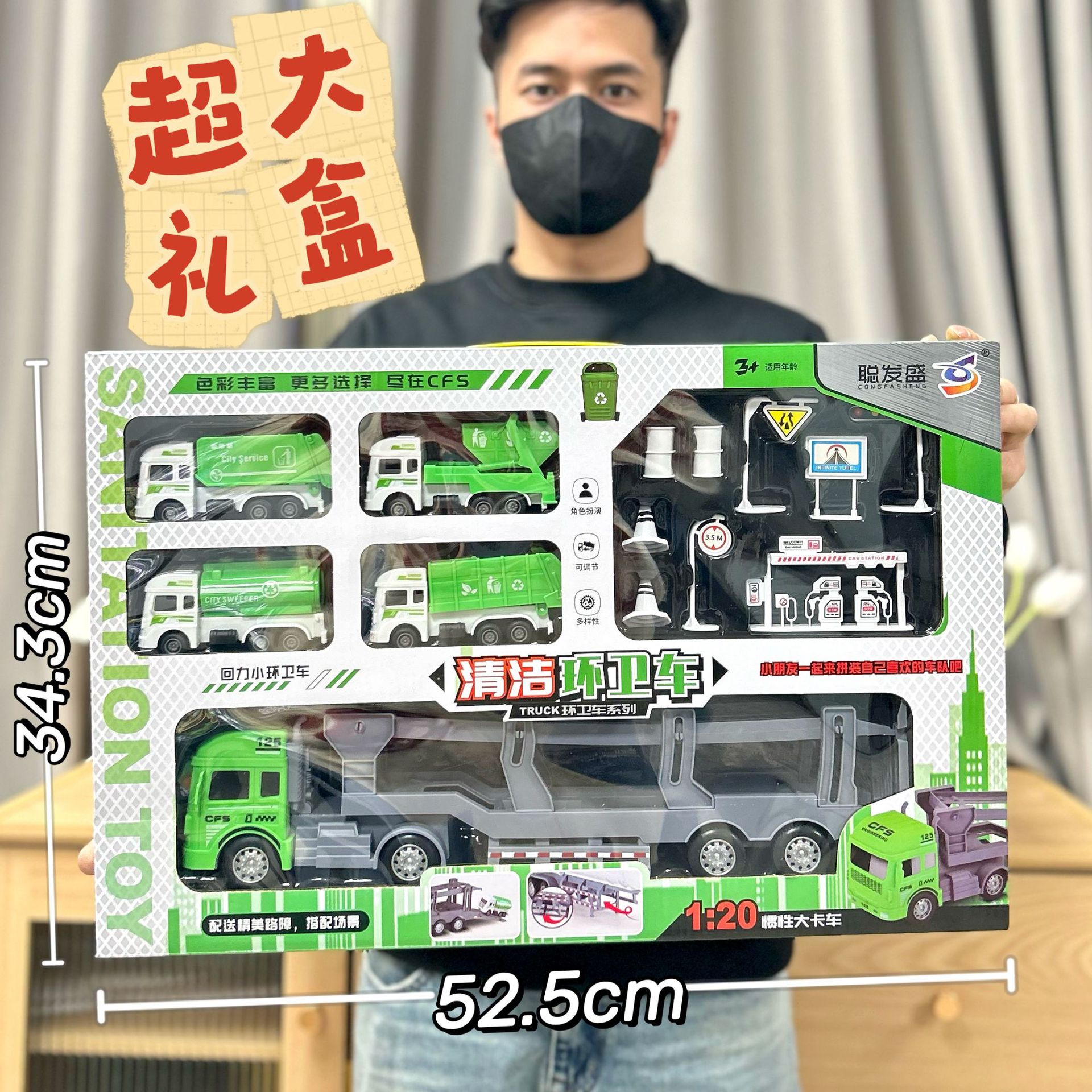 回力惯性工程车大礼盒套装挖掘机消防车套装男孩汽车玩具地摊