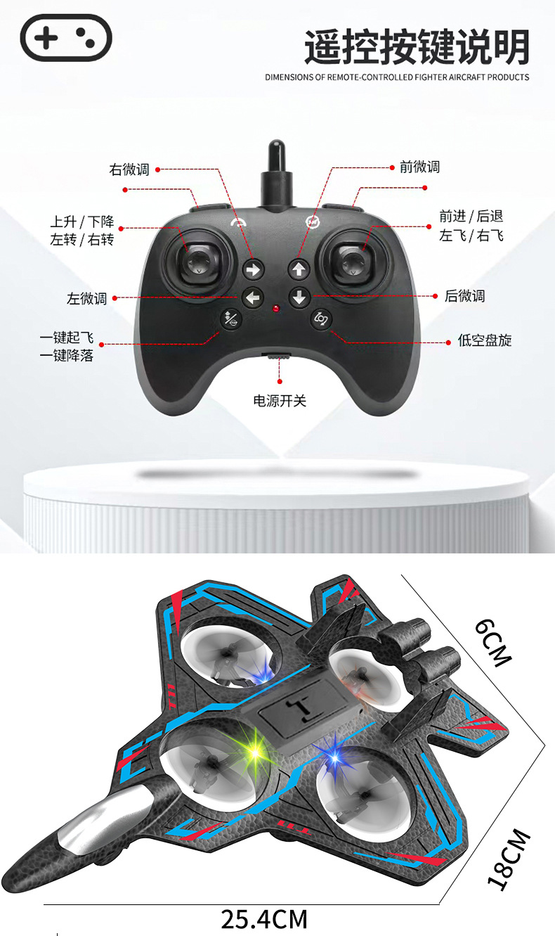 新款长续航滑翔机儿童四轴战斗机小学生小型特技翻滚遥控飞机