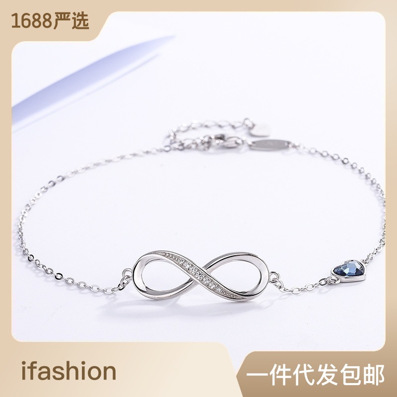 热销S925纯银爱心欧美风无限手链心形水晶石手饰源头