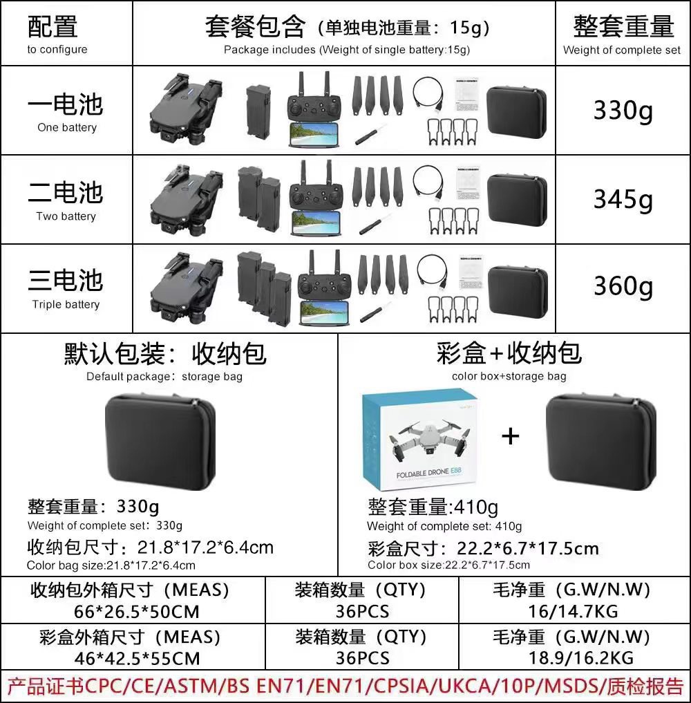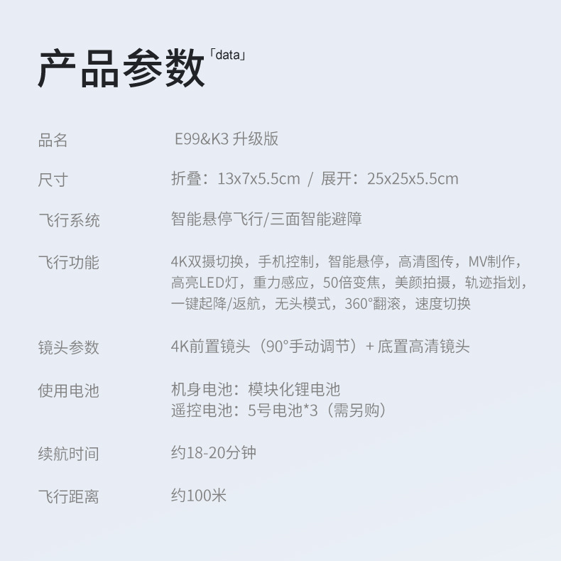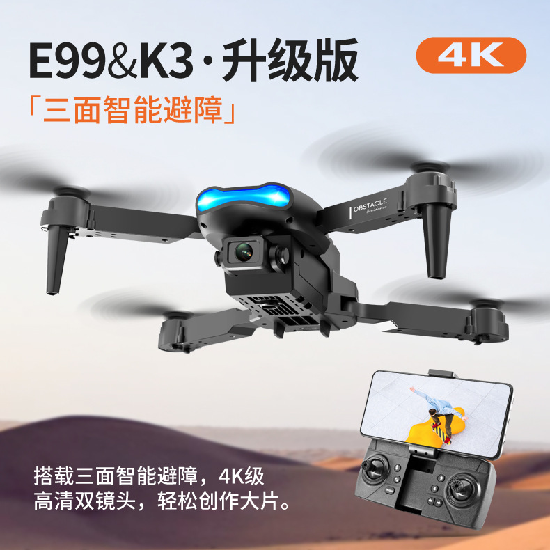 K3/E99三面避障无人机4K高清航拍遥控飞机玩具四轴折叠飞行器