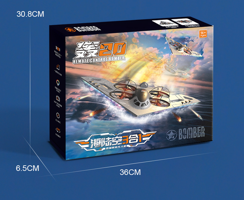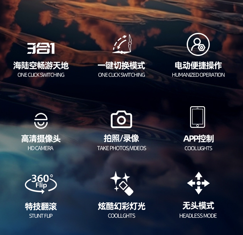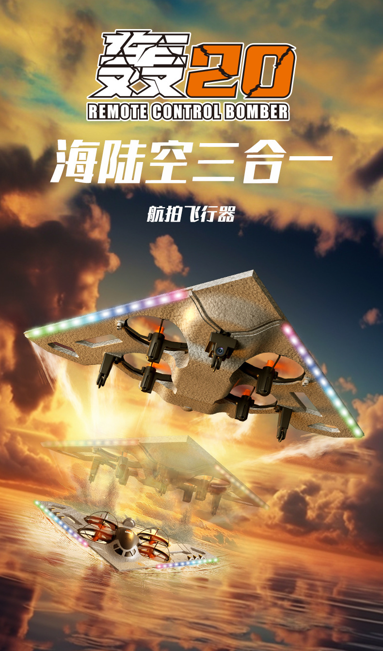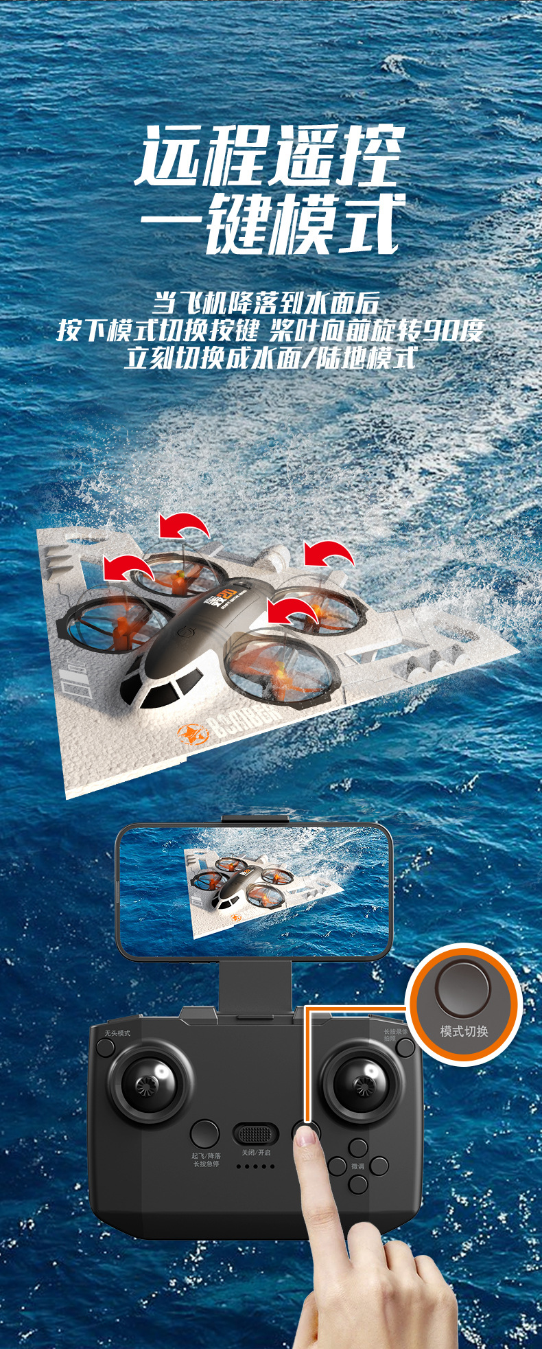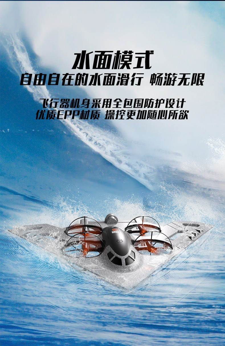 新品海陆空三合一航拍飞行器遥控泡沫飞机多功能一键切换模式