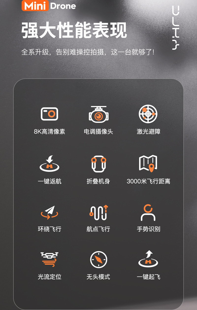 - 橙色Q16-【360°全面避障】电调双镜头+光流悬停