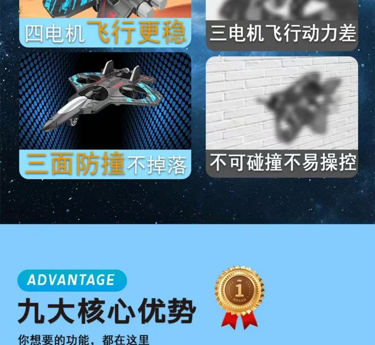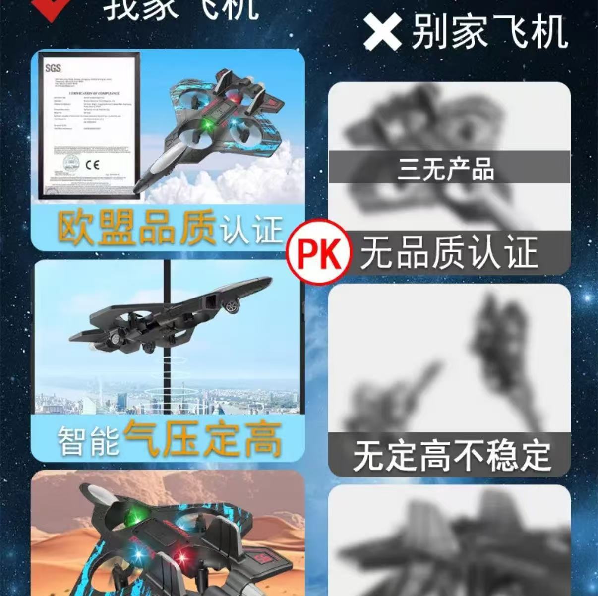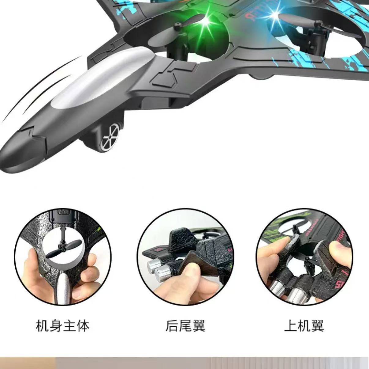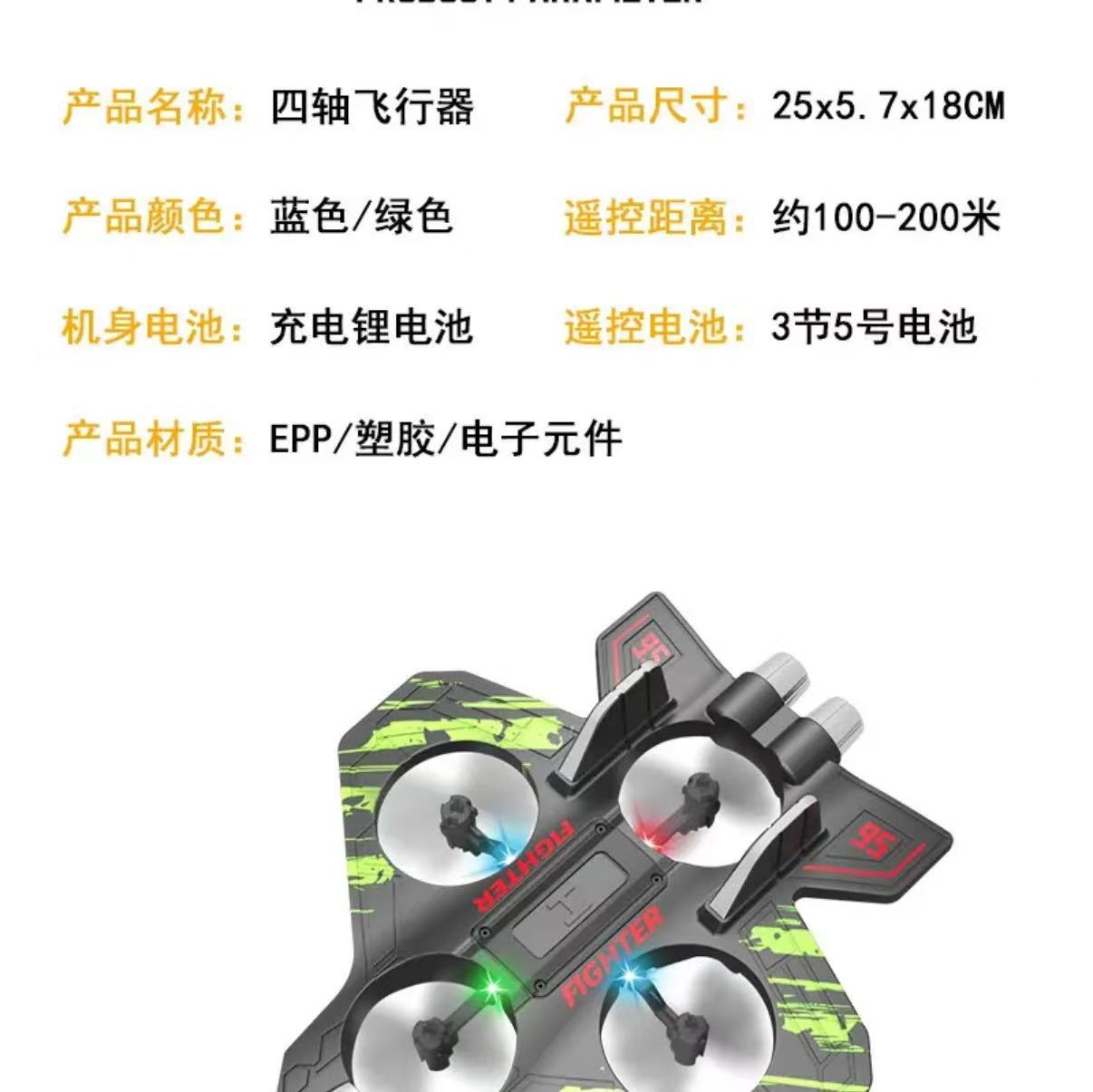 儿童遥控歼击机四轴特技无人机可充电耐摔泡沫滑翔机