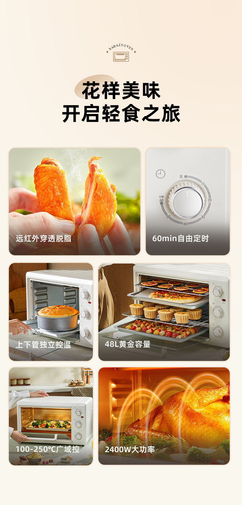 烤箱家用电烤箱烘焙多功能全自动48L升大容量