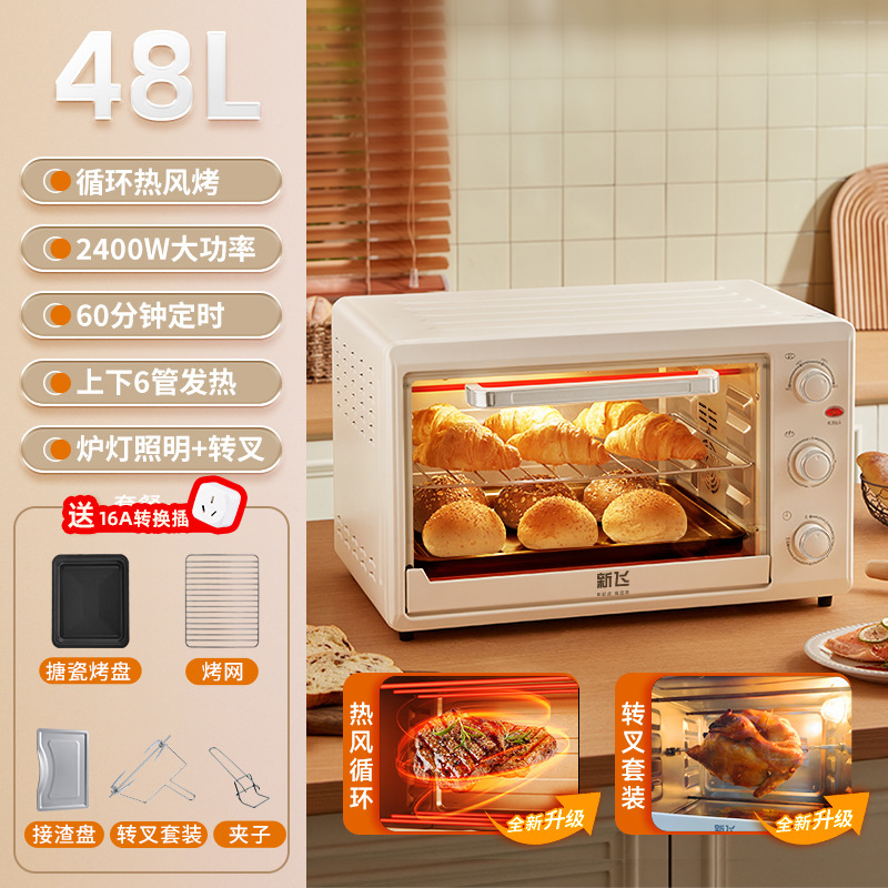 新飞电烤箱家用大容量48升全自动烤炉面包饼干烤箱定时控温烘焙