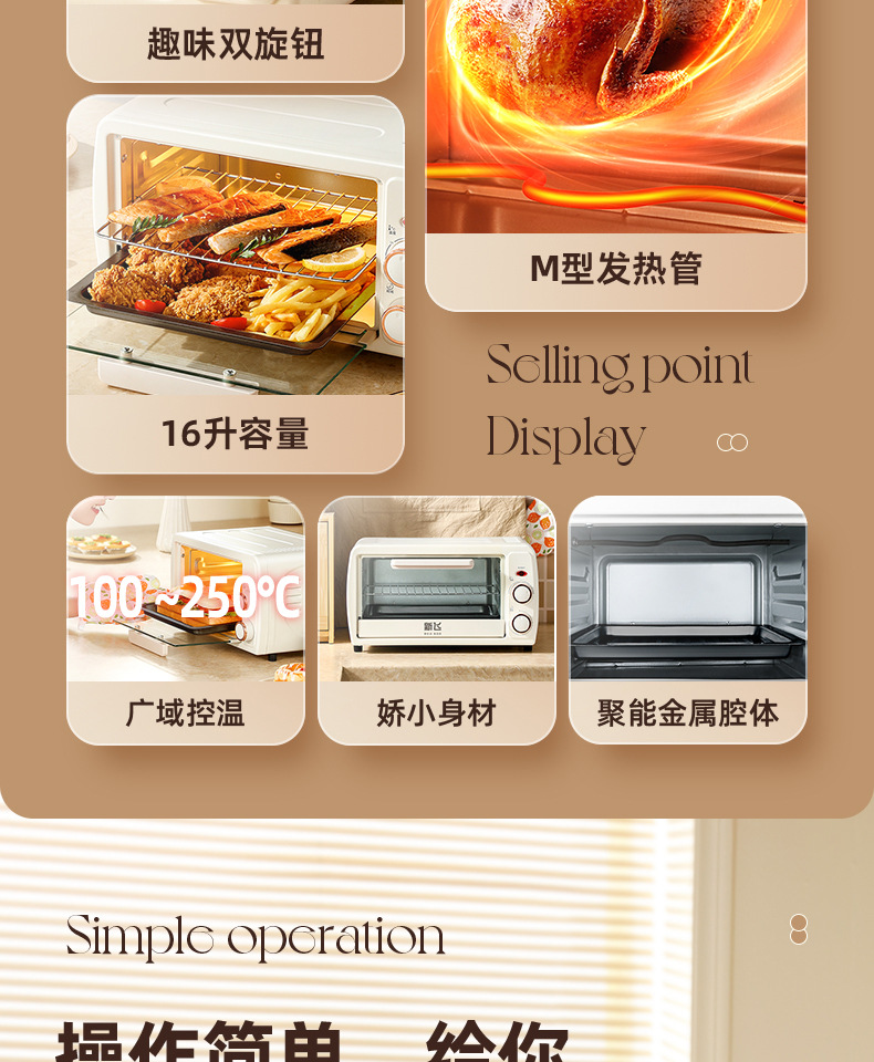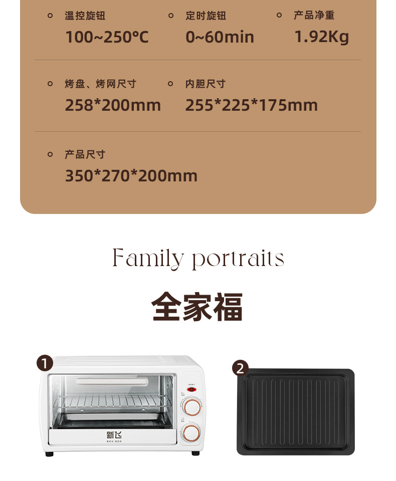 新飞电烤箱家用迷你烤箱16L升多功能烘焙小型烤炉大容量小烤箱
