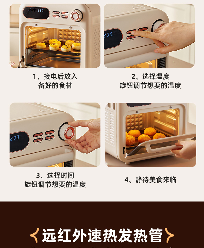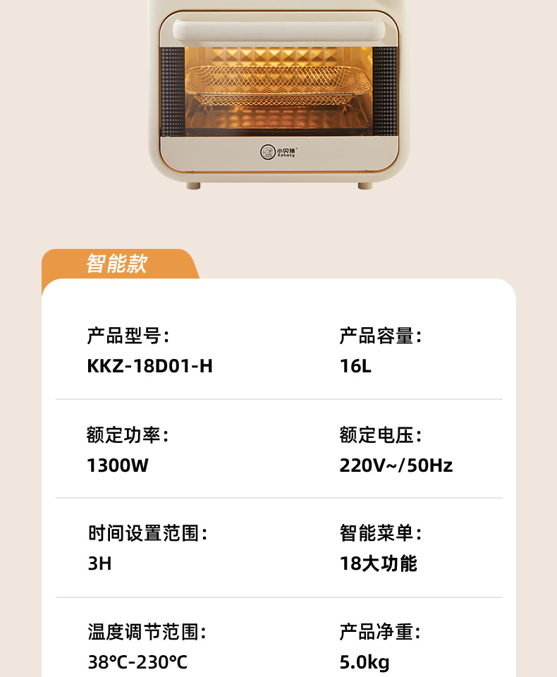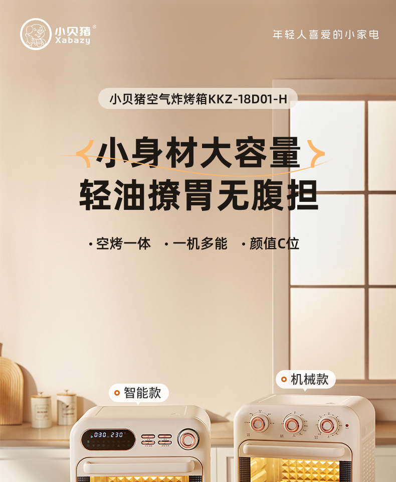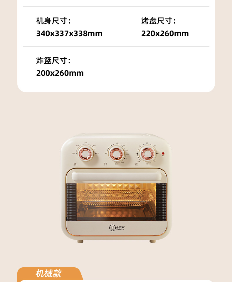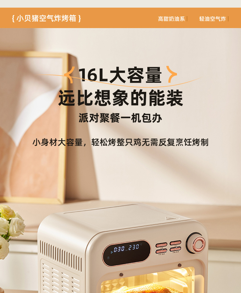 小贝猪电烤箱家用烘焙空气炸电烤箱一体机16升小型多功能烤箱
