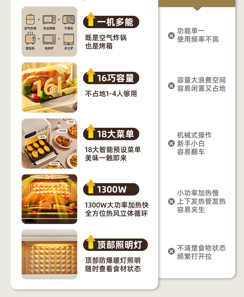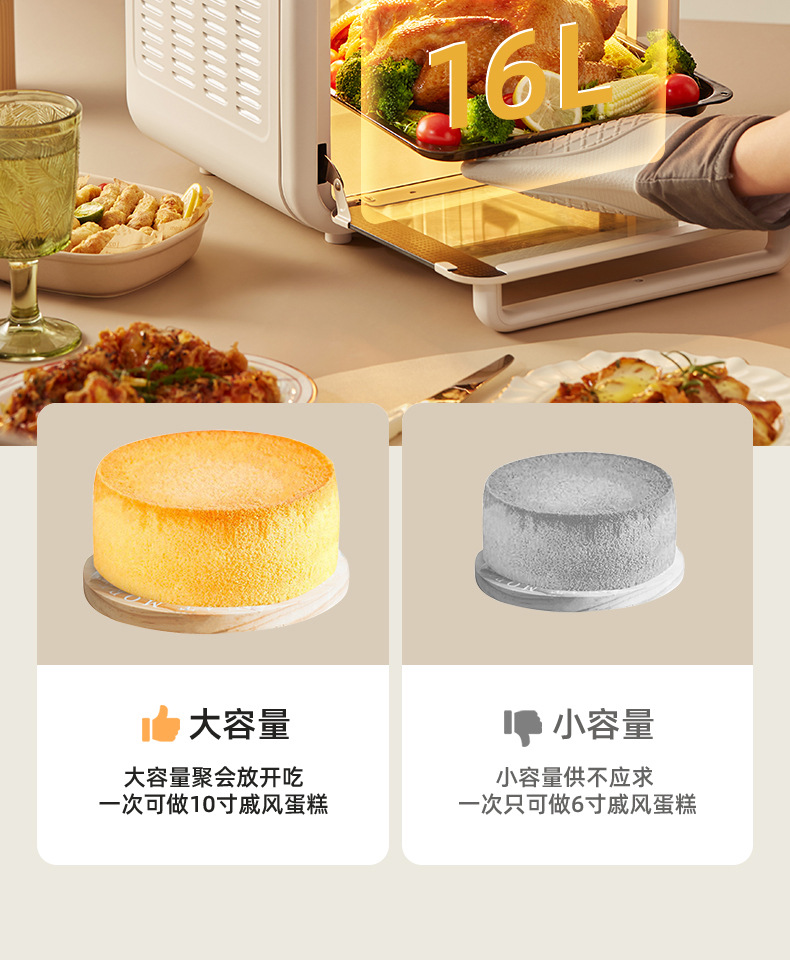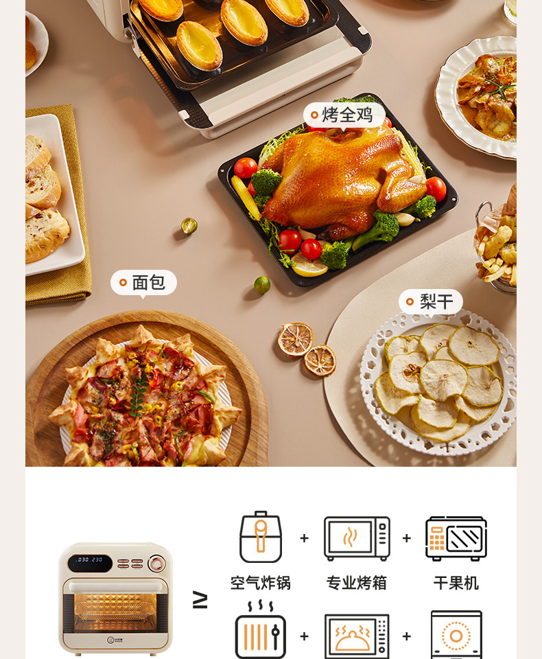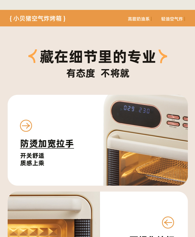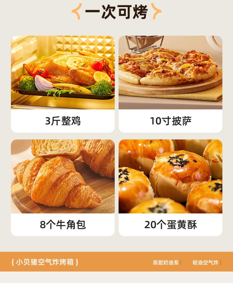 小贝猪电烤箱家用烘焙空气炸电烤箱一体机16升小型多功能烤箱