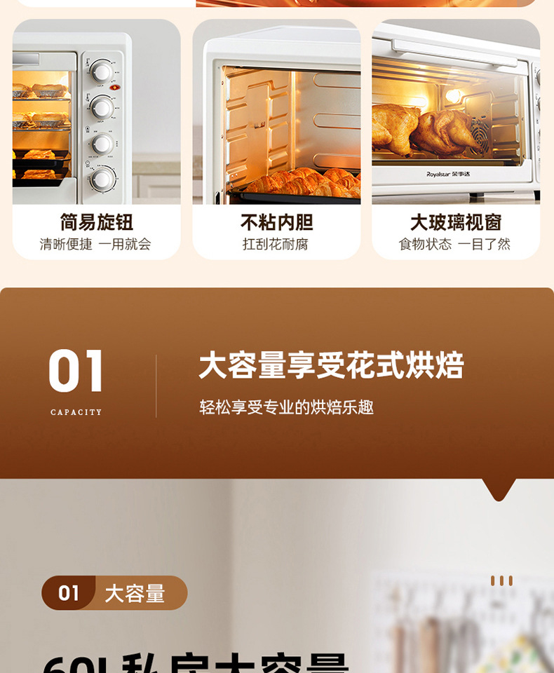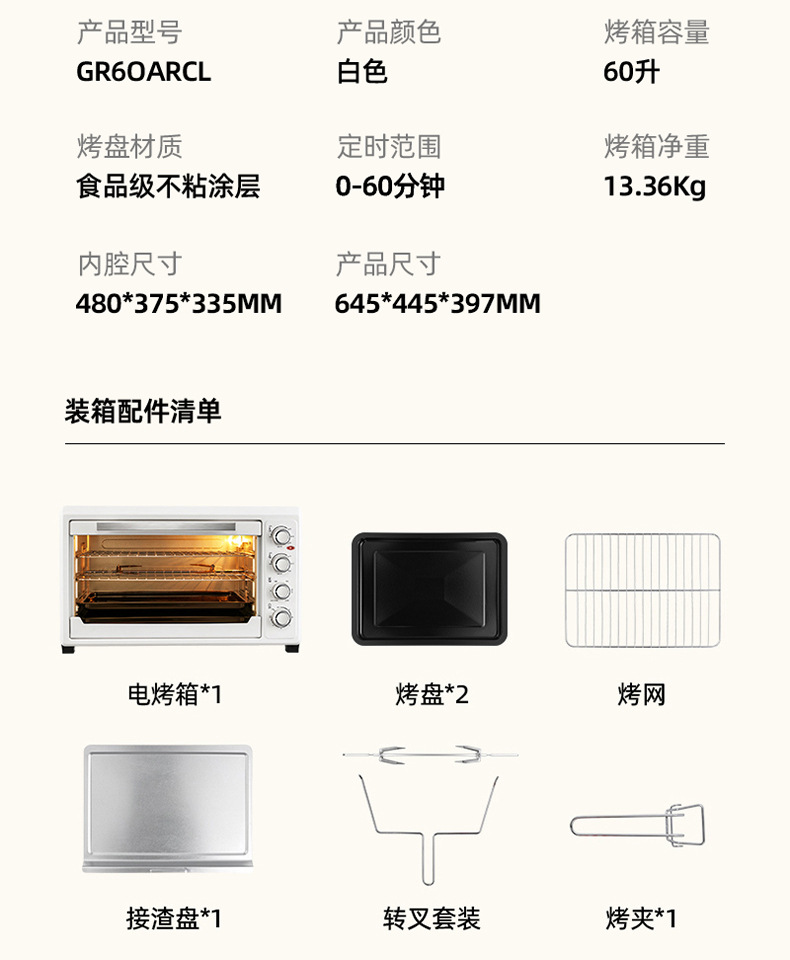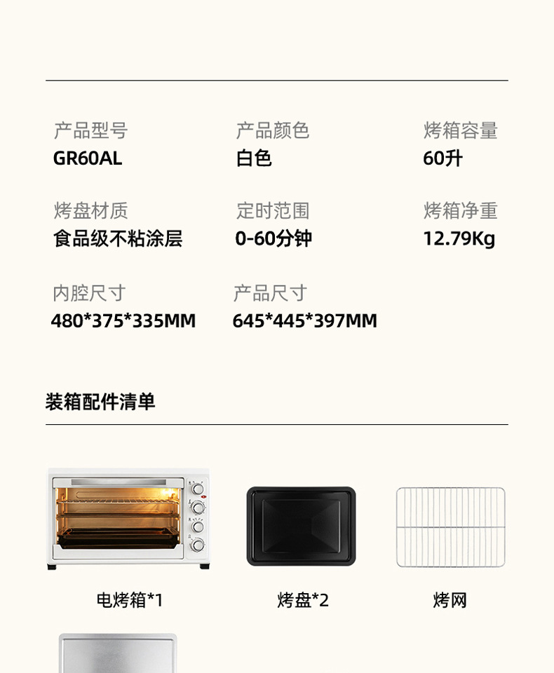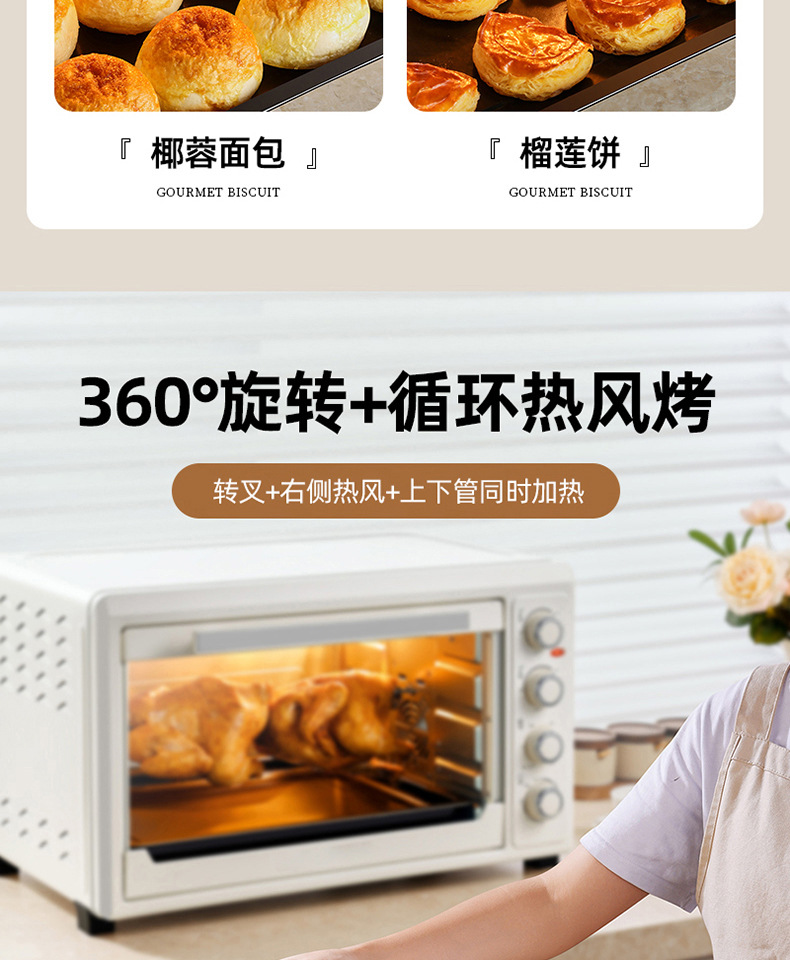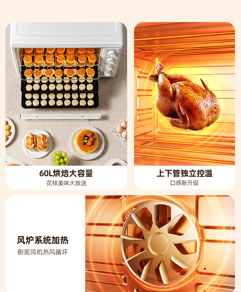 电烤箱家用烘焙多功能空气炸烤箱一体机60L大容量商用