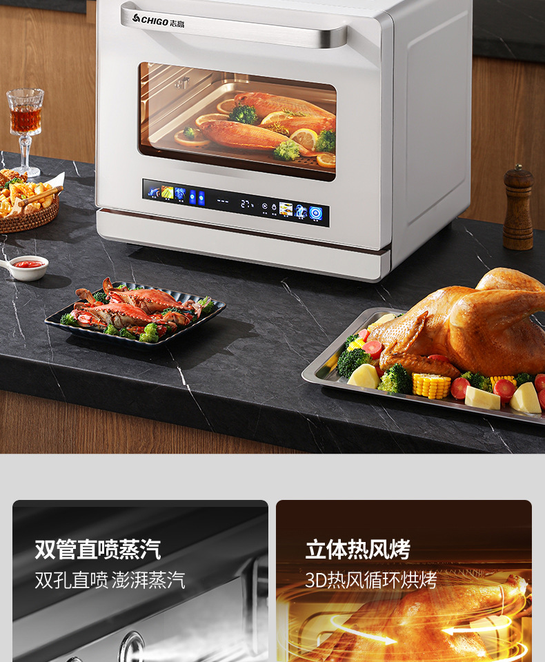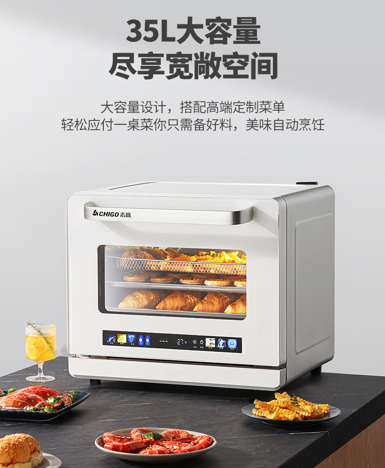 志高电烤箱家用蒸烤一体机烘焙35L大容量多功能商用蒸汽烤箱