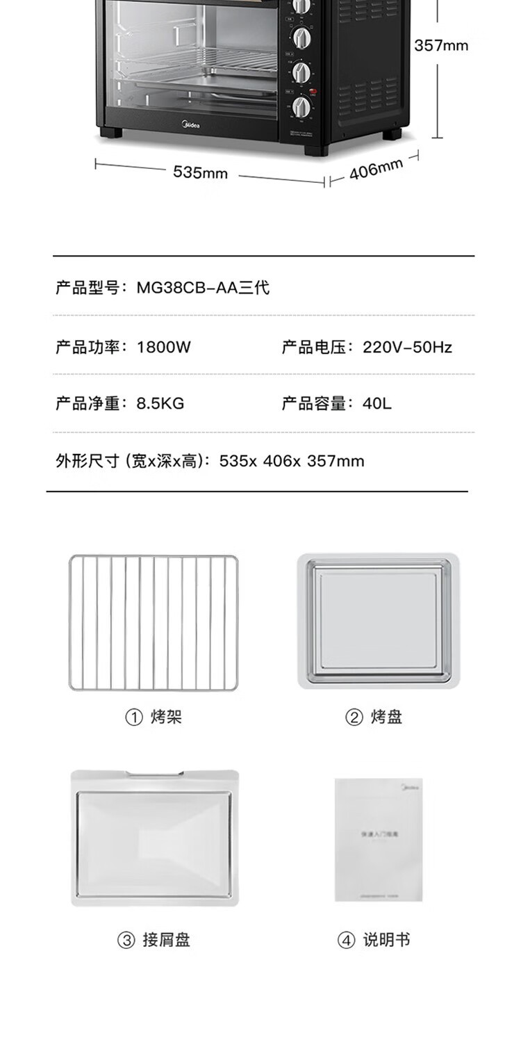 家用烤箱烘焙电烤箱40L升多功能大容量