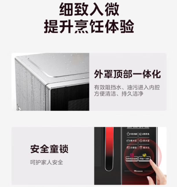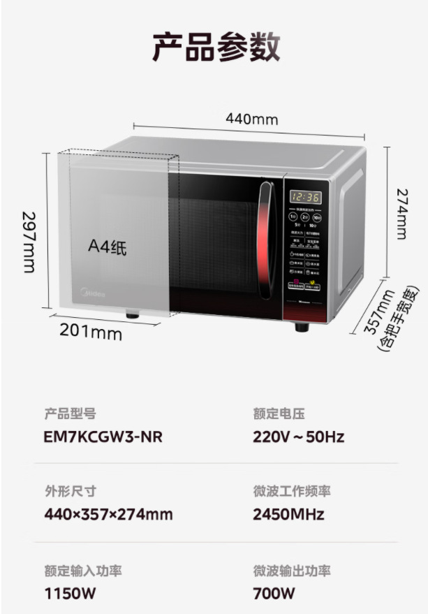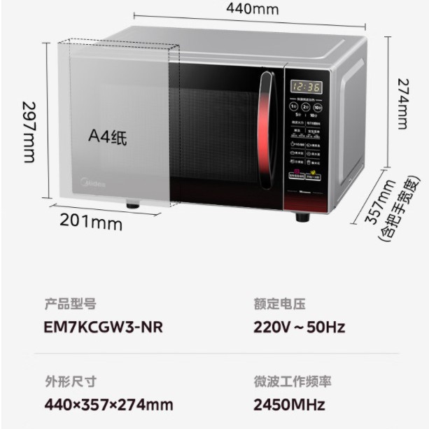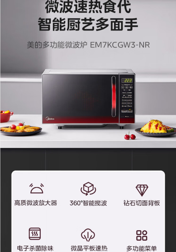 微波炉EM7KCGW3-NR家用平板按键多项功能快加热蒸煮20升