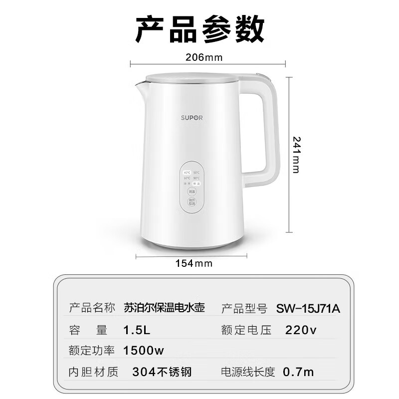 电水壶热水壶1.5L显温触控5段调温电热水壶电水壶SW-15J71A