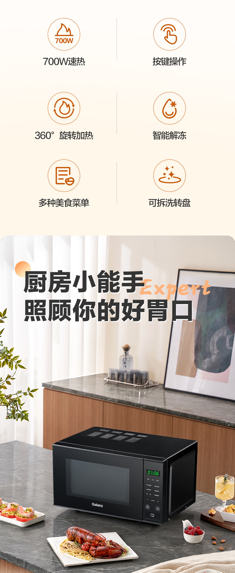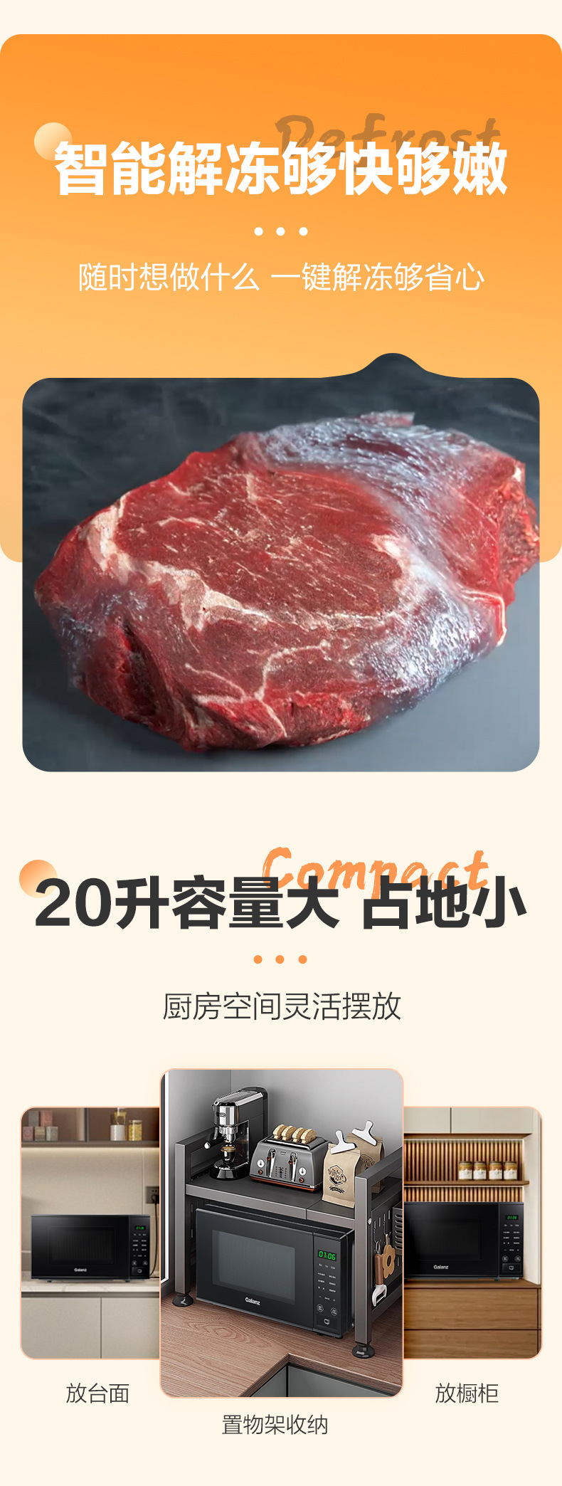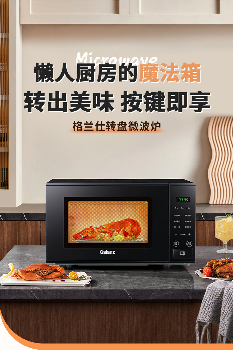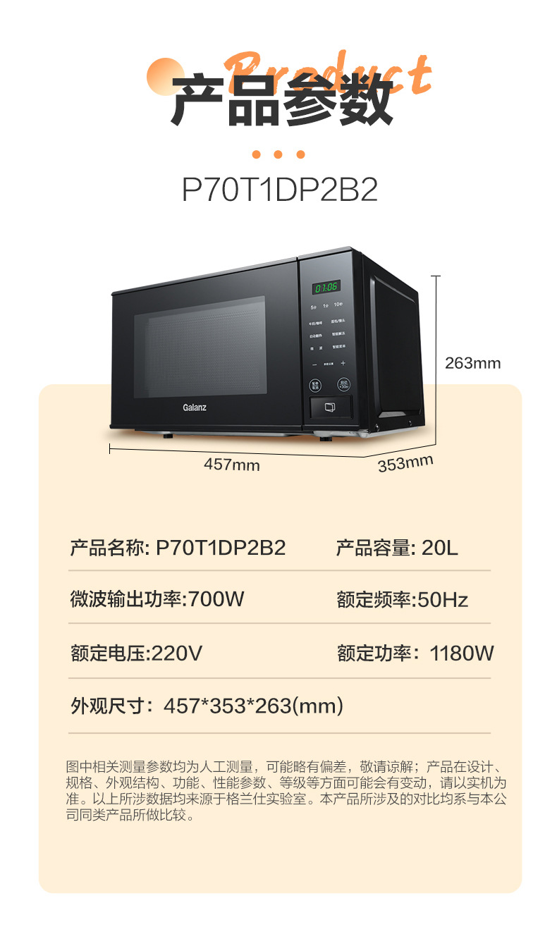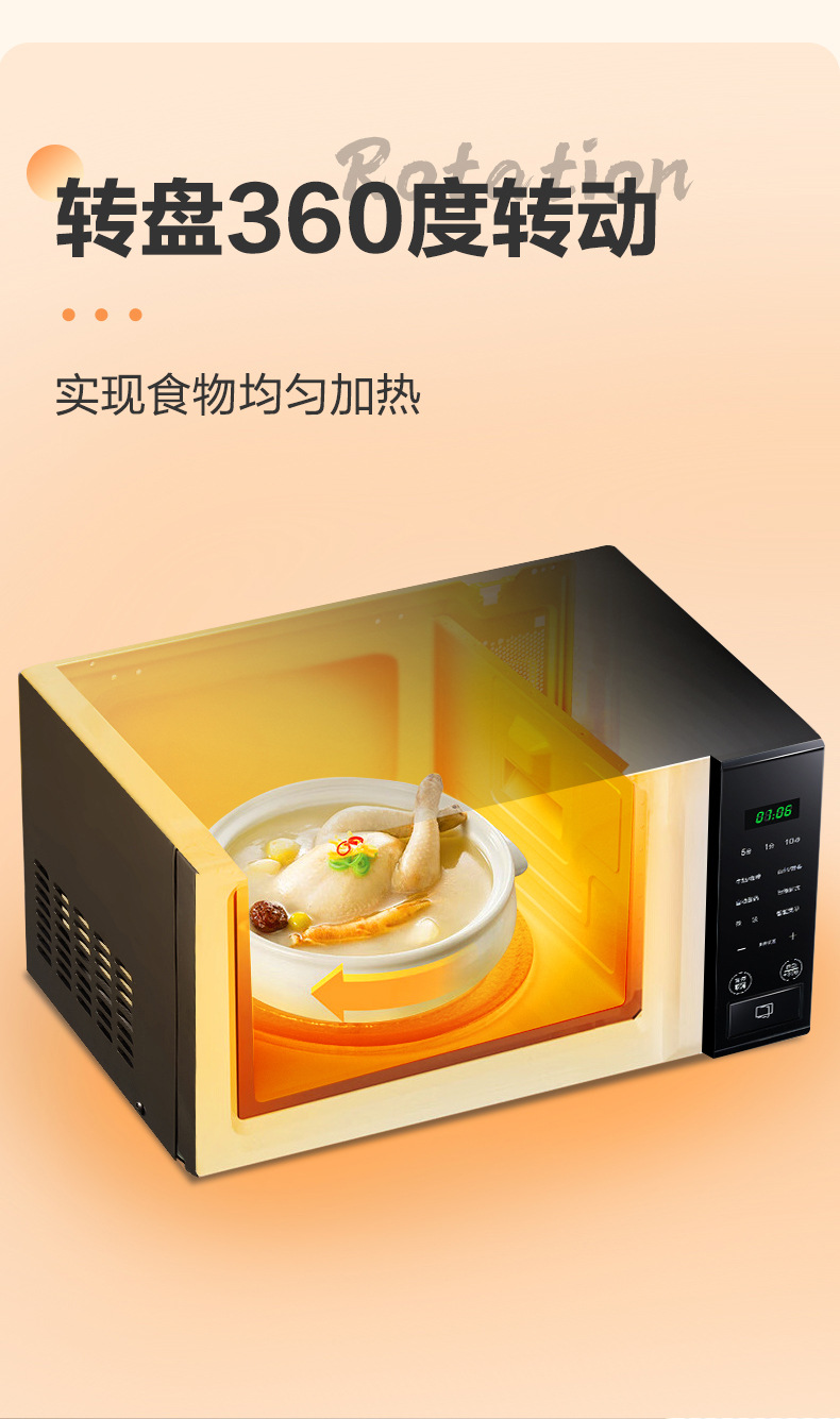 微波炉20升转盘式加热家用热饭菜多功能预约定时微波炉P2B2