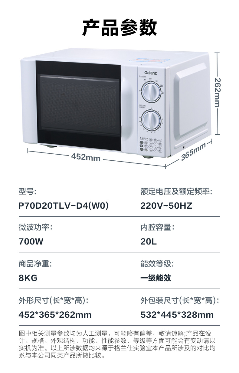 微波炉20升变频一级能效转盘式加热家用多功能新品升级款D4