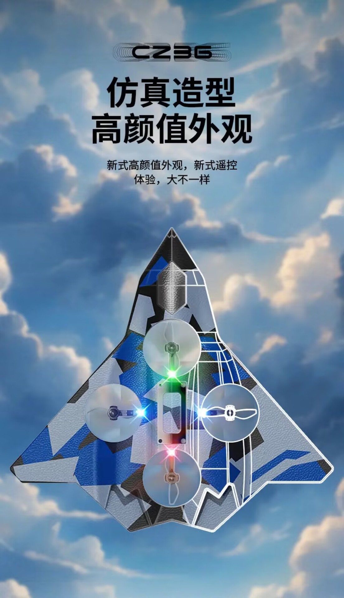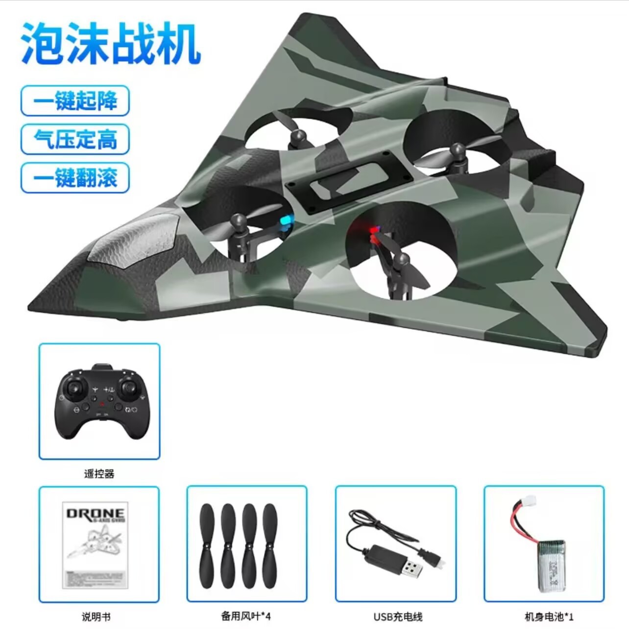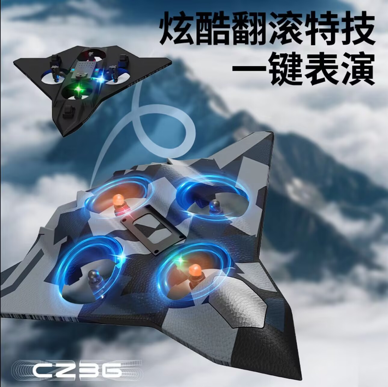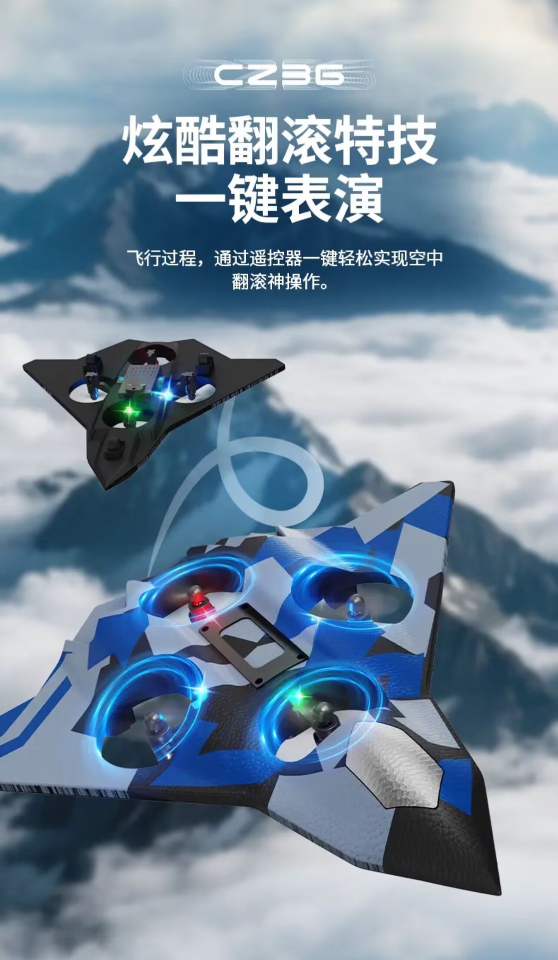 五代蓝色战机【四轴飞行器】炫彩灯光 +花式飞行+特技翻转