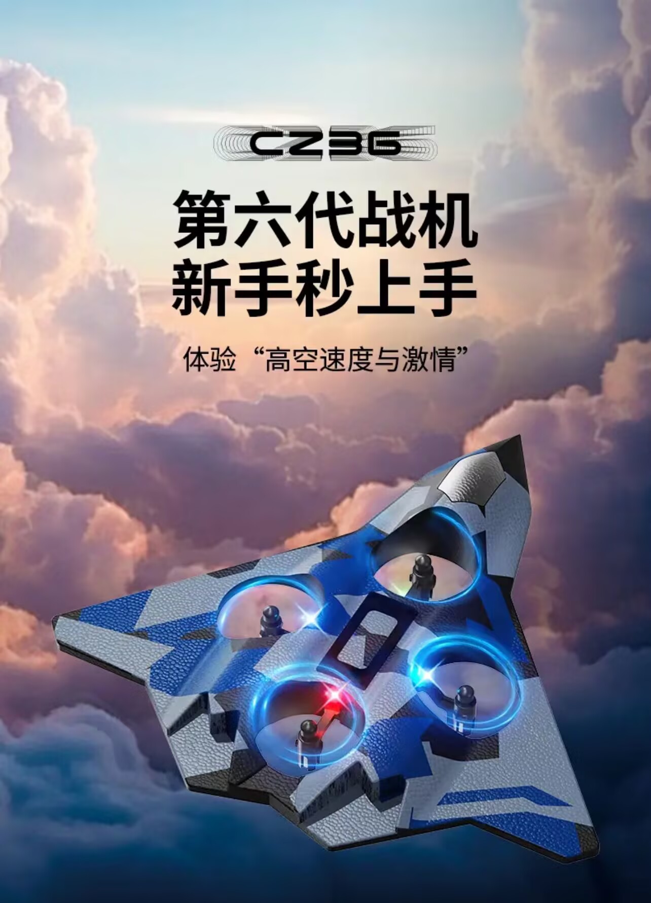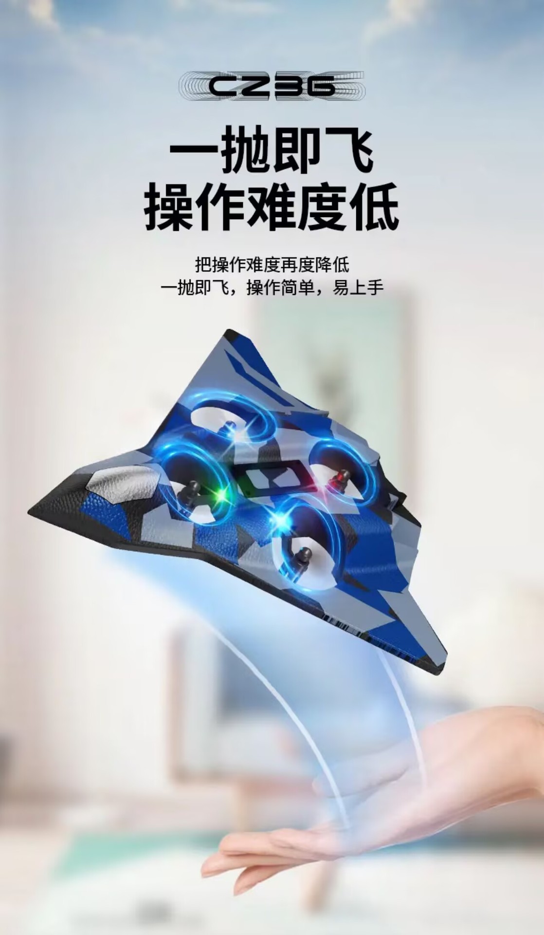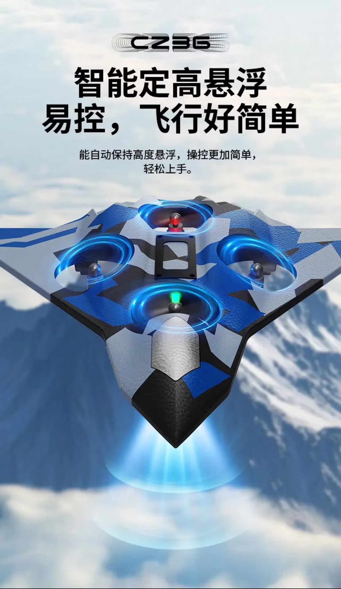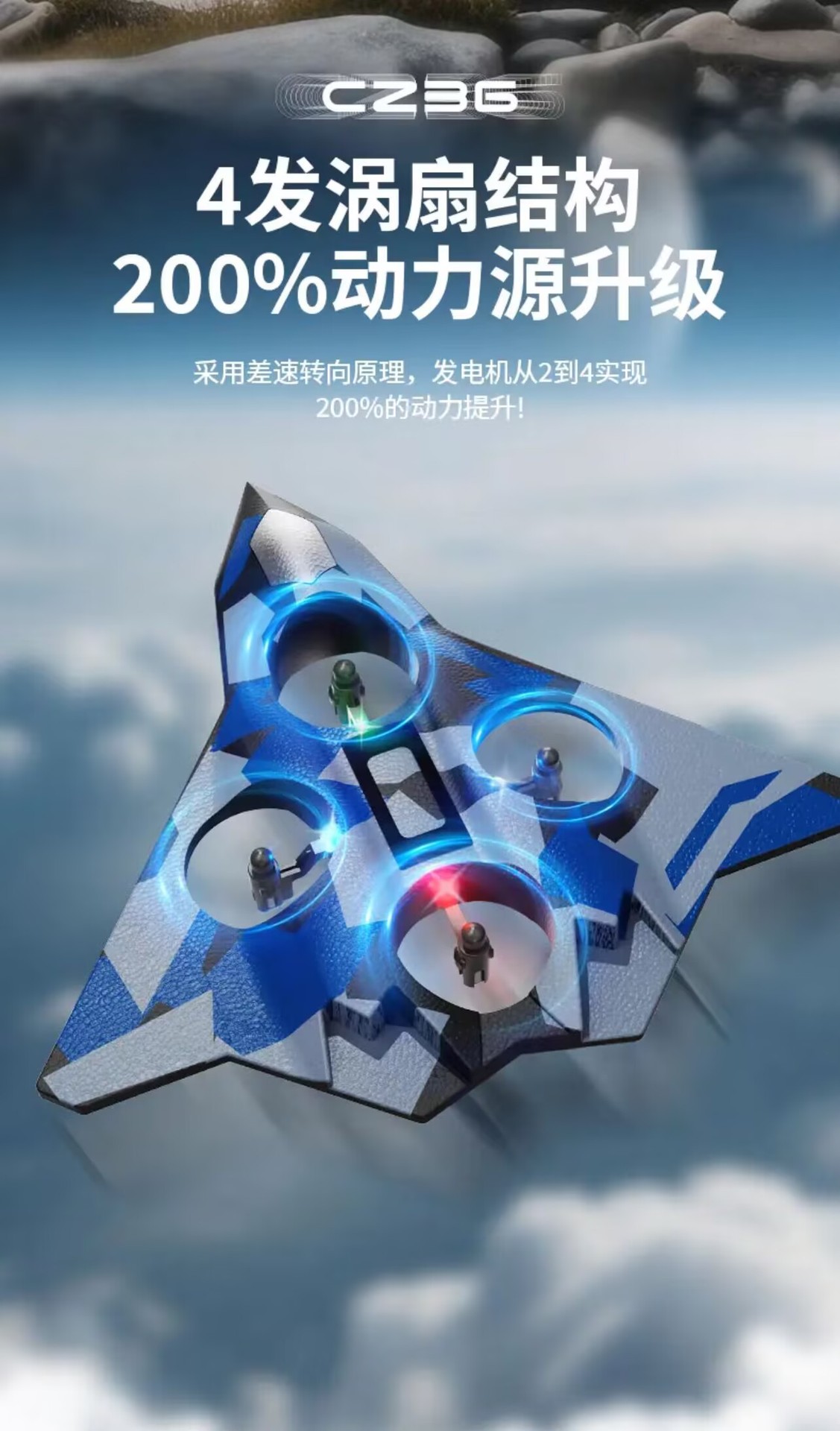 五代蓝色战机【四轴飞行器】炫彩灯光 +花式飞行+特技翻转