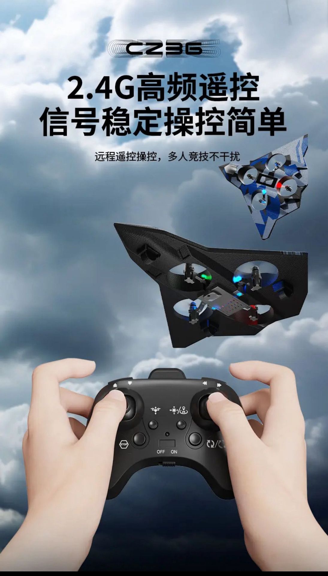 六代遥控飞机悬浮翻转ZC36无人机航模滑翔泡沫炫彩灯光飞行器玩具