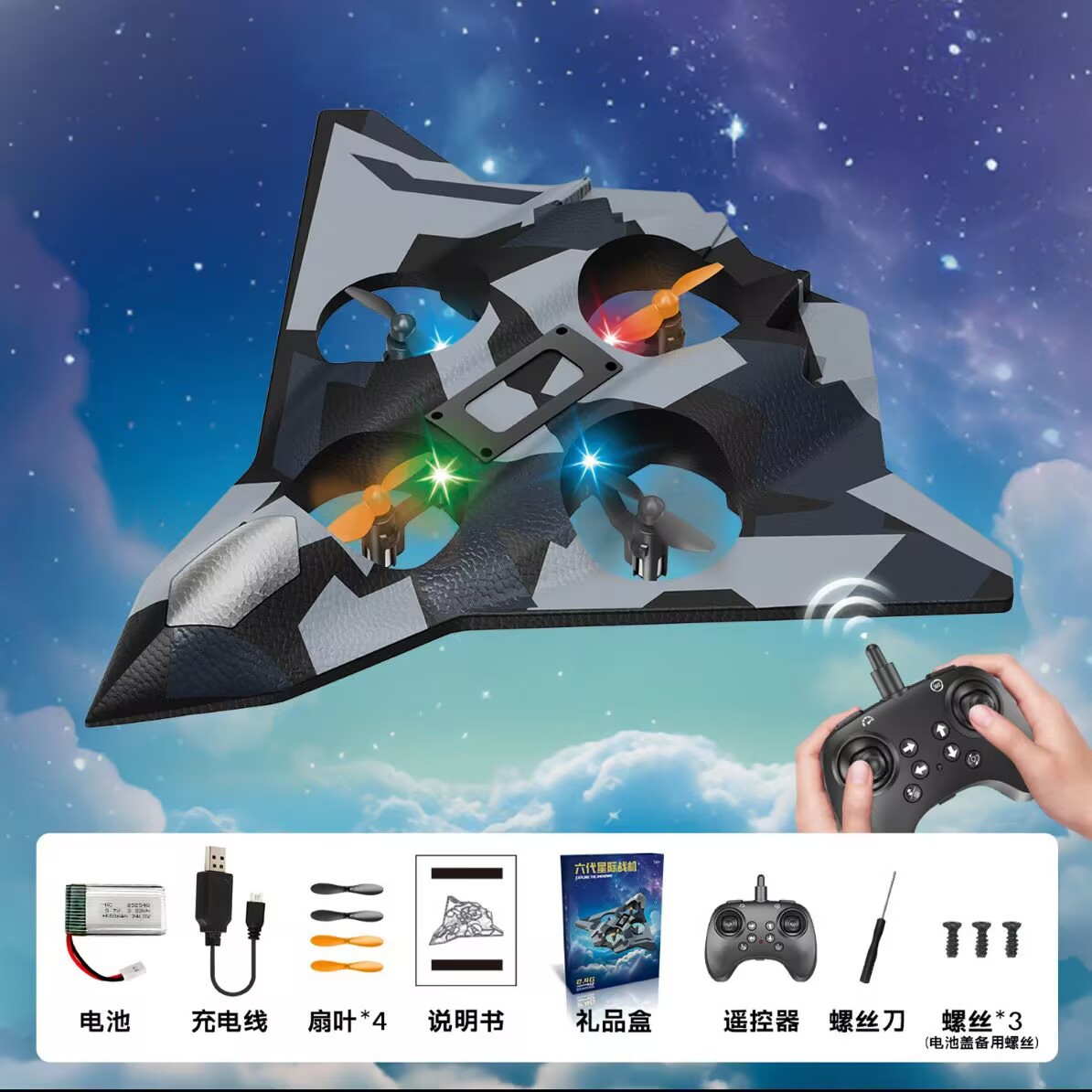 六代迷彩灰【四轴飞行器】炫彩灯光 +花式飞行+特技翻转