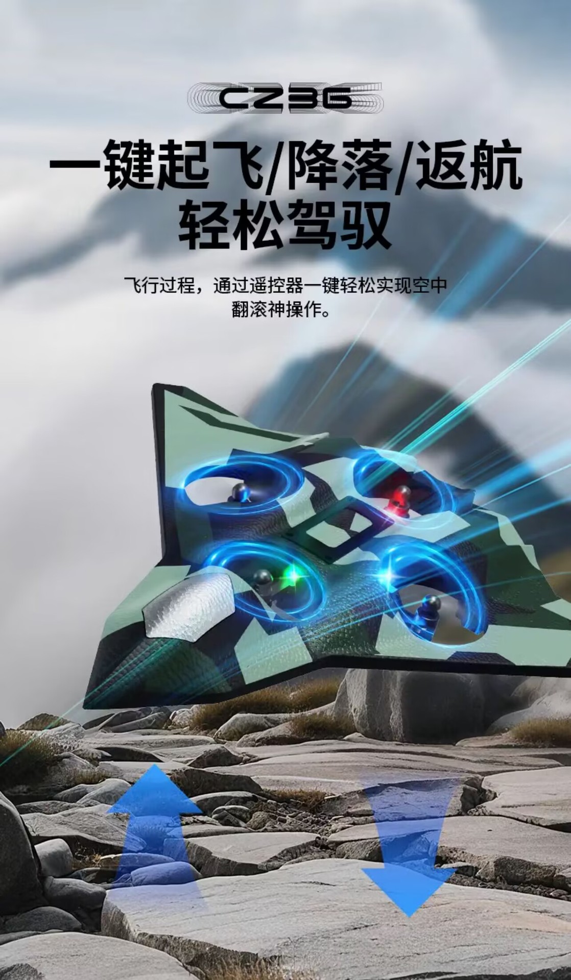 六代迷彩蓝【四轴飞行器】炫彩灯光 +花式飞行+特技翻转