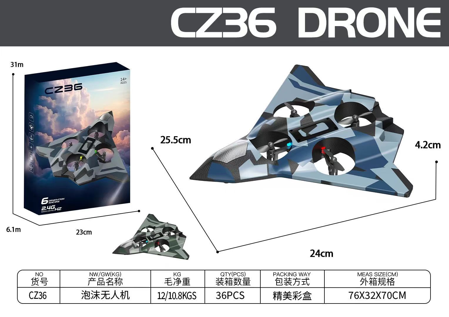 CZ36男孩遥控飞机玩具带灯泡沫滑翔机战斗机航模无人机小学生小型