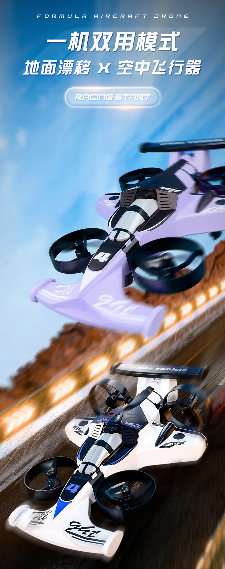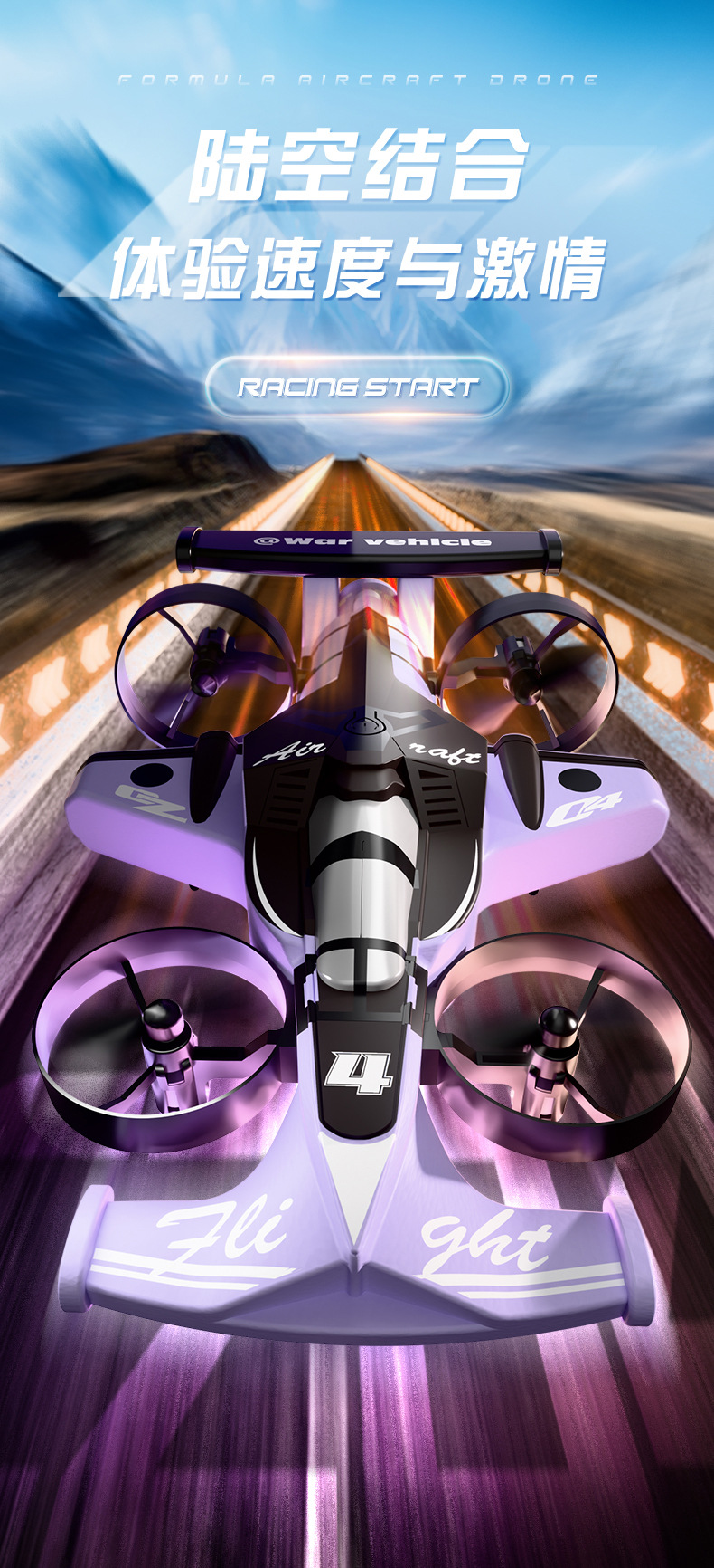 两栖陆空双模式四驱战车【星空紫】