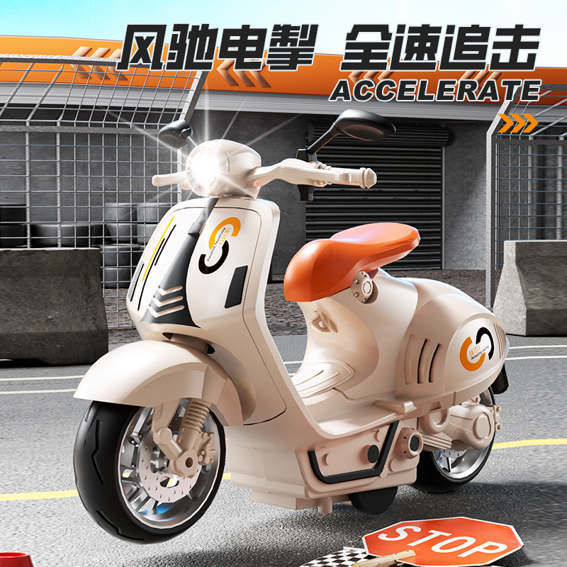 1:12仿真踏板摩托车惯性行驶灯光音效儿童摩托车玩具车模型