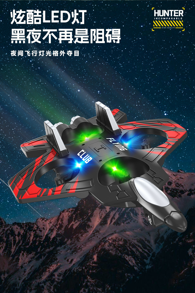 航模遥控飞机特技定高耐摔泡沫重力滑翔机特效炫彩灯光四轴无人机