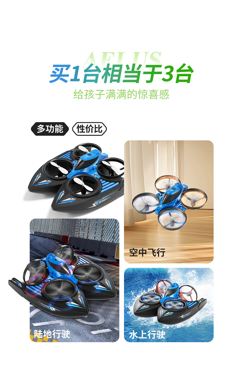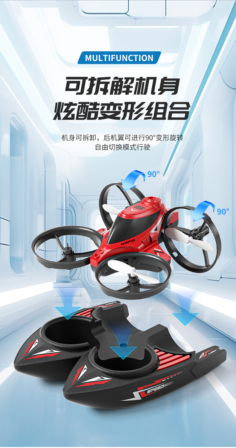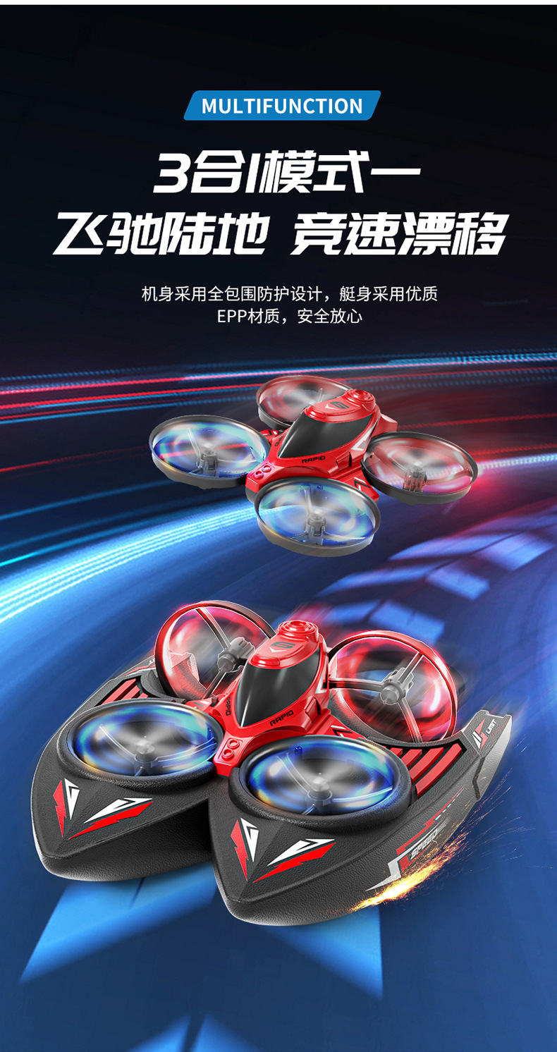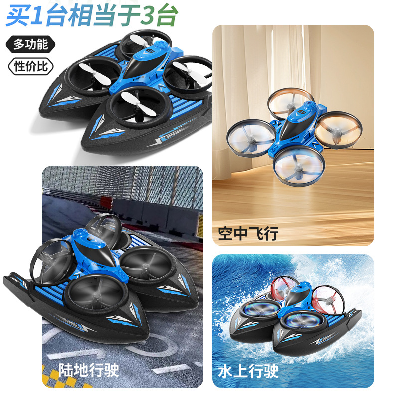 无人机儿童遥控飞机直升男孩玩具水陆空三合一遥控车小学生遥控船