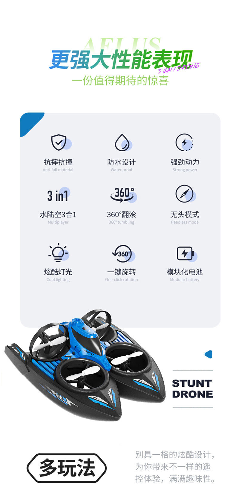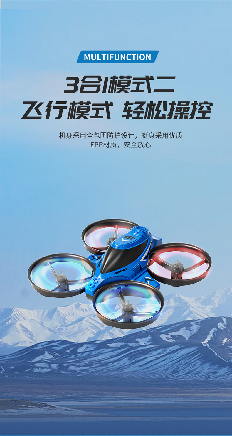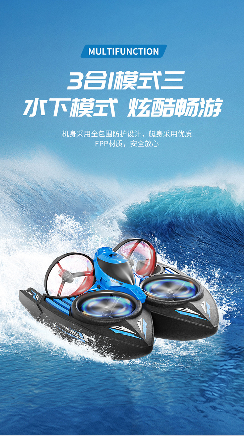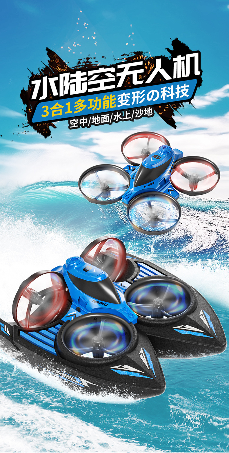无人机儿童遥控飞机直升男孩玩具水陆空三合一遥控车小学生遥控船
