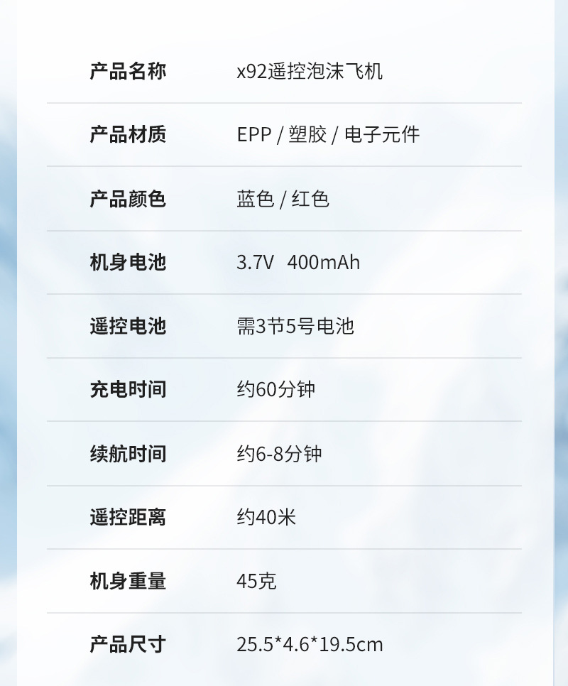 泡沫遥控飞机-蓝色【单遥控】