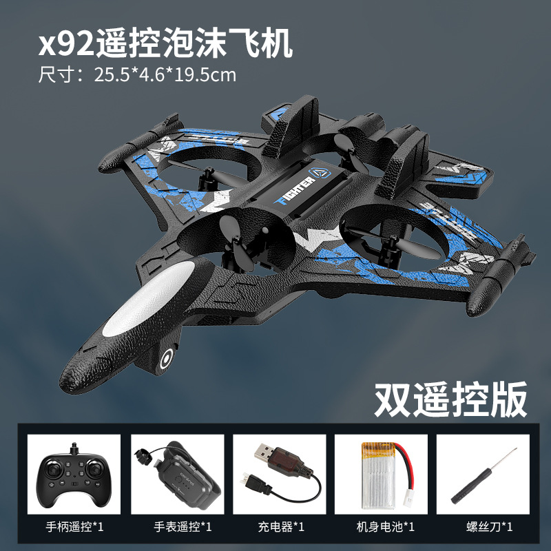 泡沫遥控飞机-蓝色【双遥控手柄+手表】