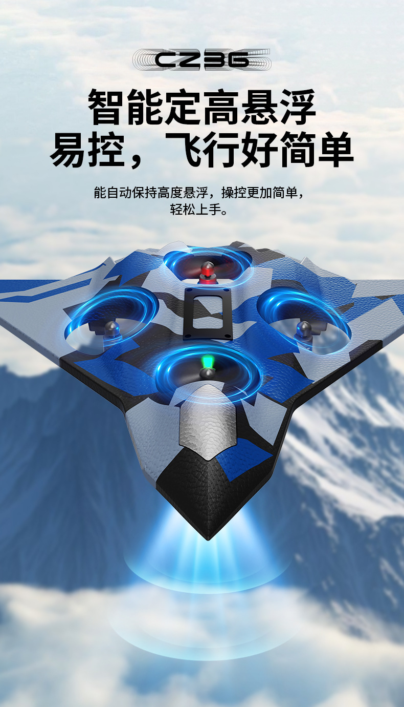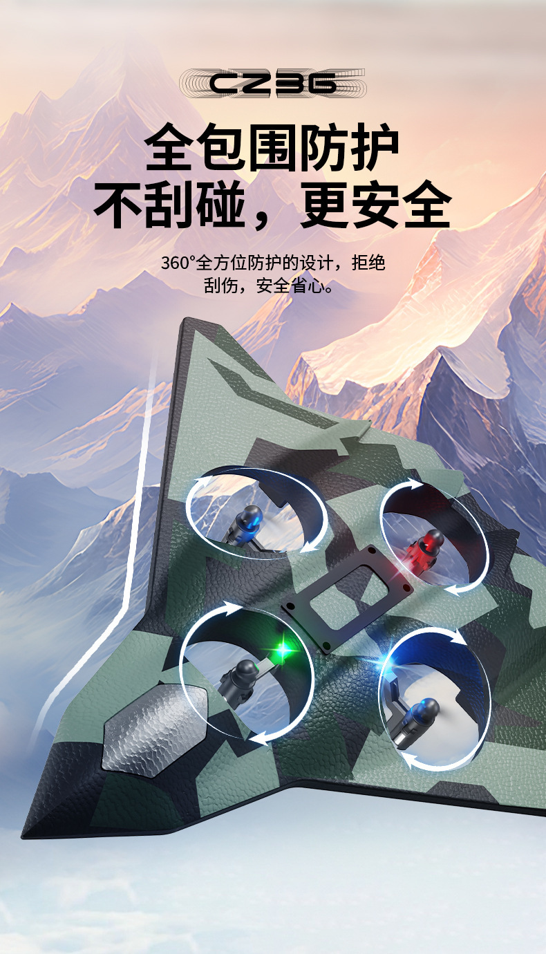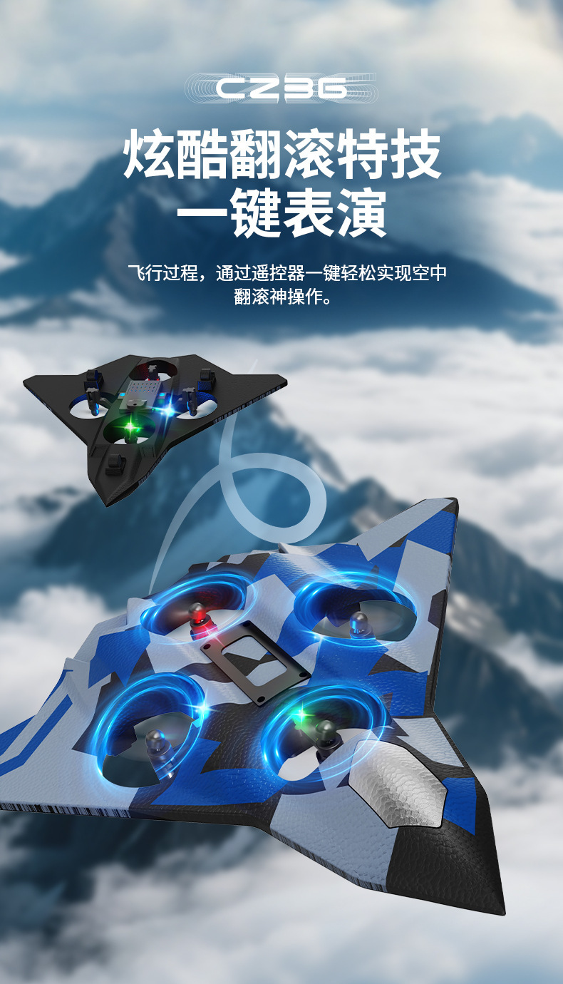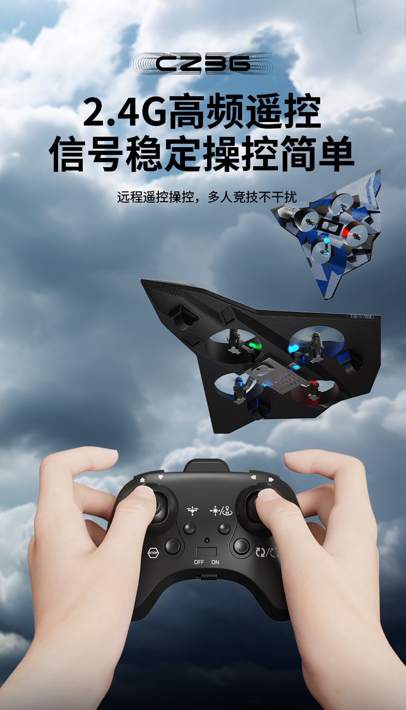 H39遥控泡沫飞机耐摔E88四轴战斗机玩具cz36六代无人战机悬停