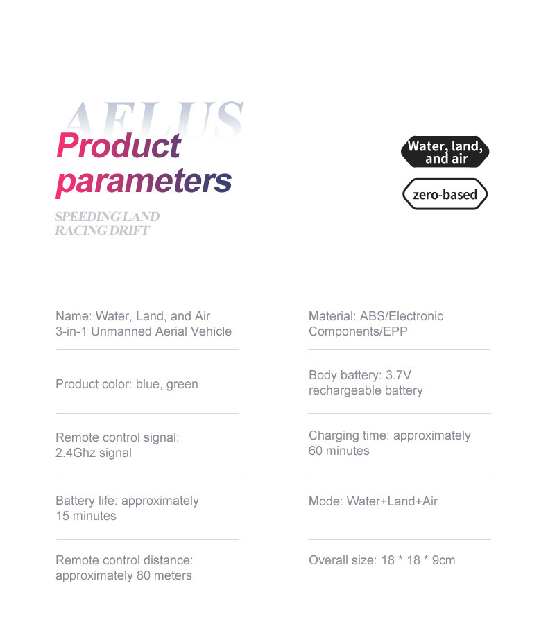 遥控海陆空玩具遥控飞机儿童三合一无人机直升机特技飞车四轴