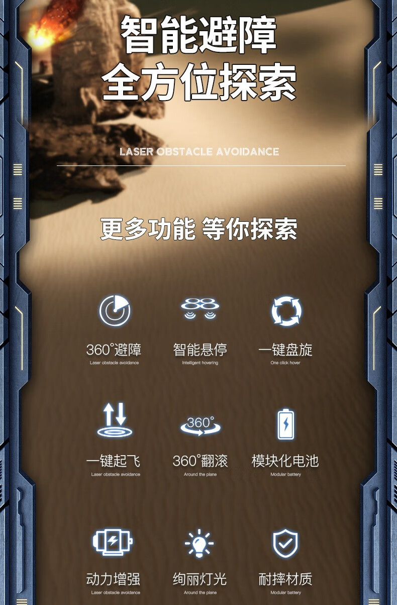 避障版遥控飞机四旋翼定高避障航拍战斗机无人机四轴飞行器