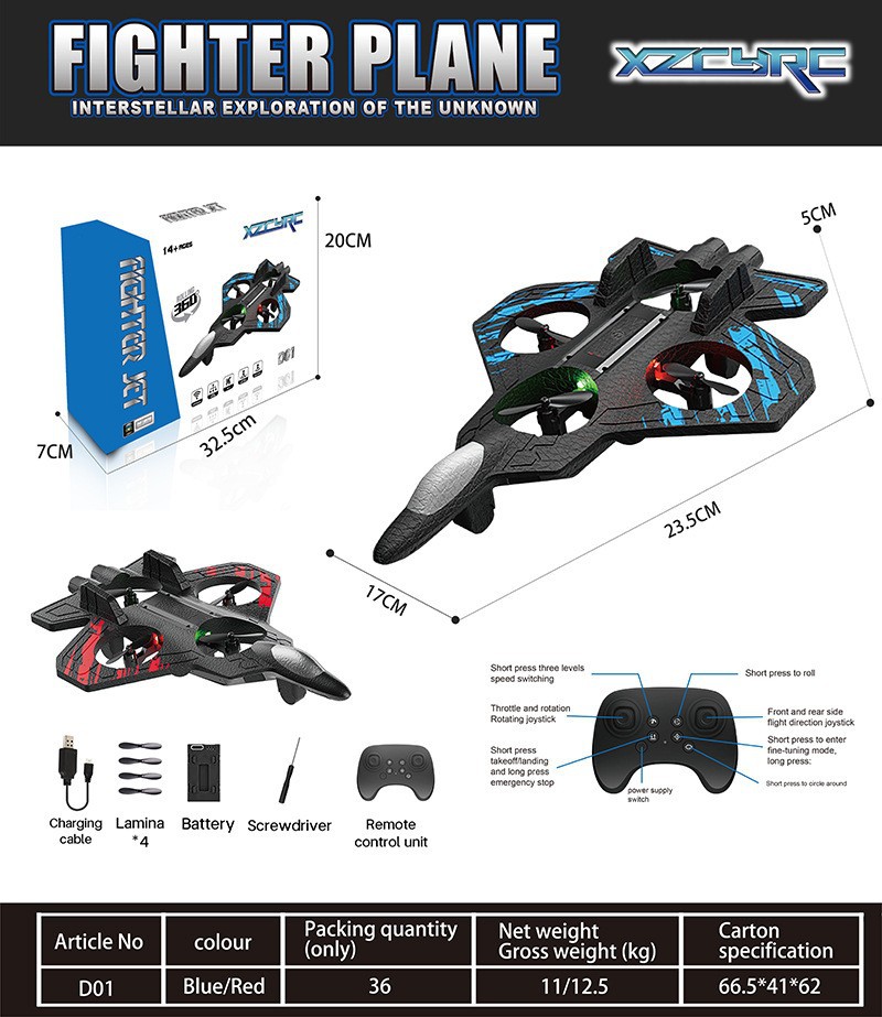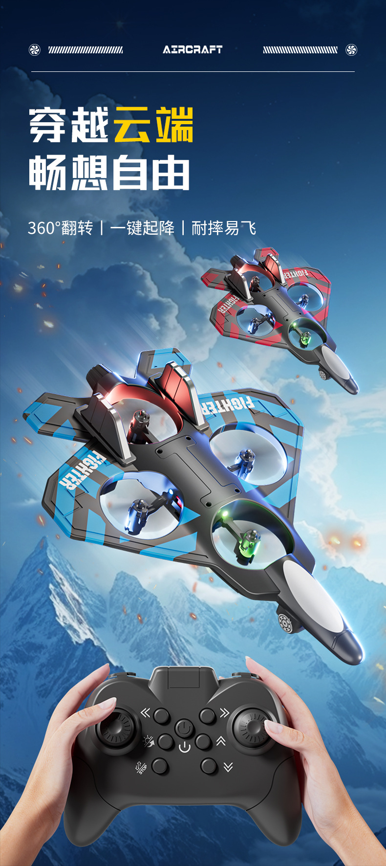 四轴战斗机遥控泡沫飞机悬浮重力感应定高无人机翻滚特技耐摔