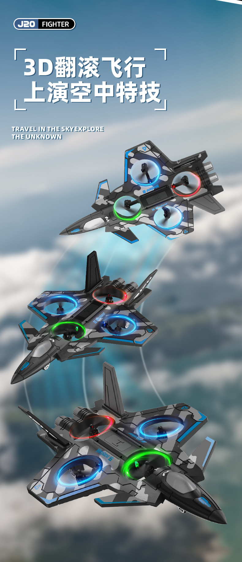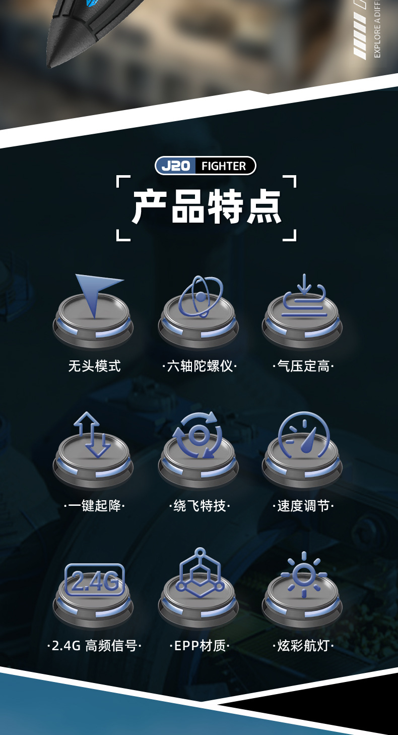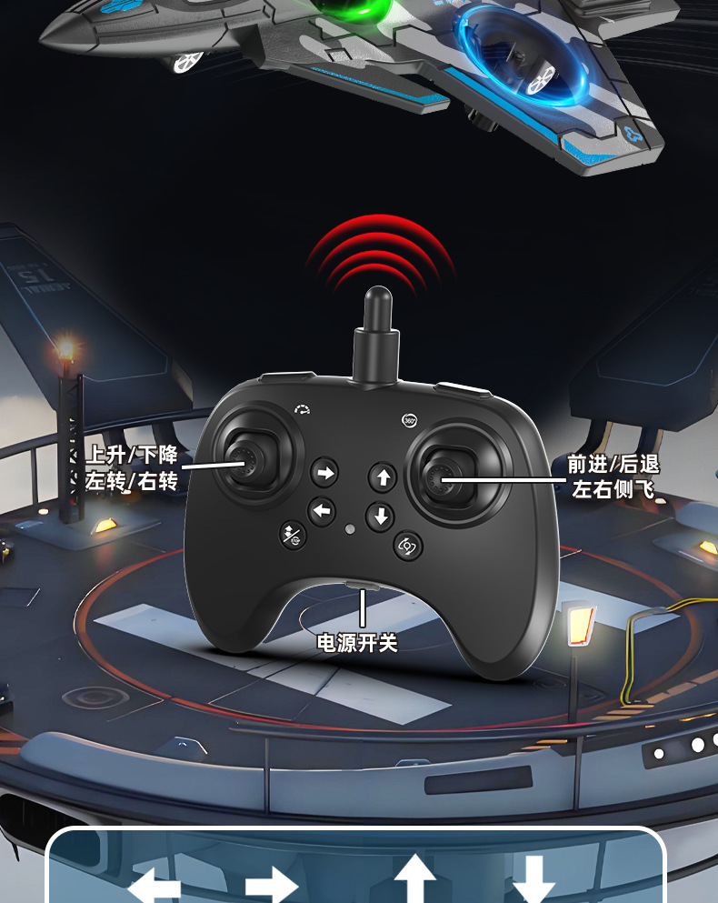 太空黑彩战机【六轴陀螺仪+气压定高+炫酷灯光+特技翻滚】