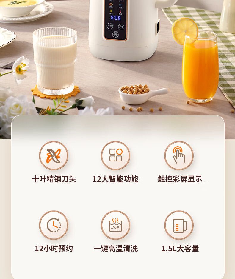 大容量全自动多功能辅食榨汁免煮免滤料豆浆机轻音破壁机