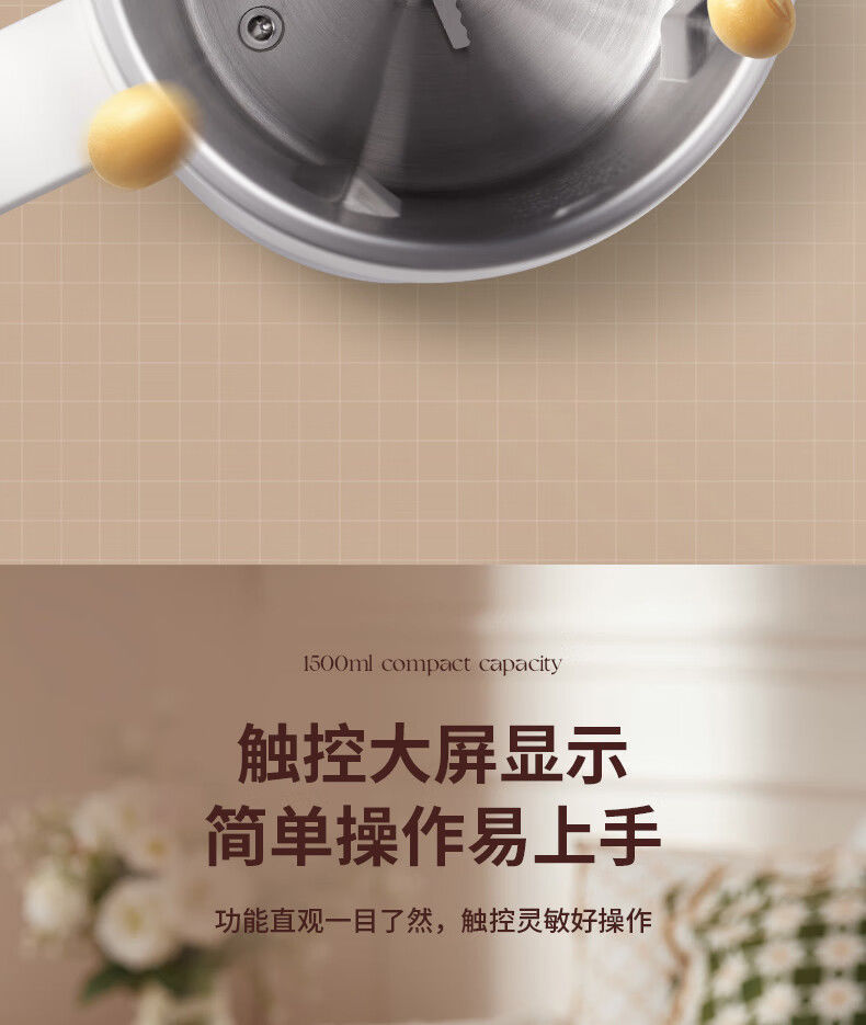 智能柔音加热破壁机老人家用豆浆机变频触屏研磨无渣多功能料理机