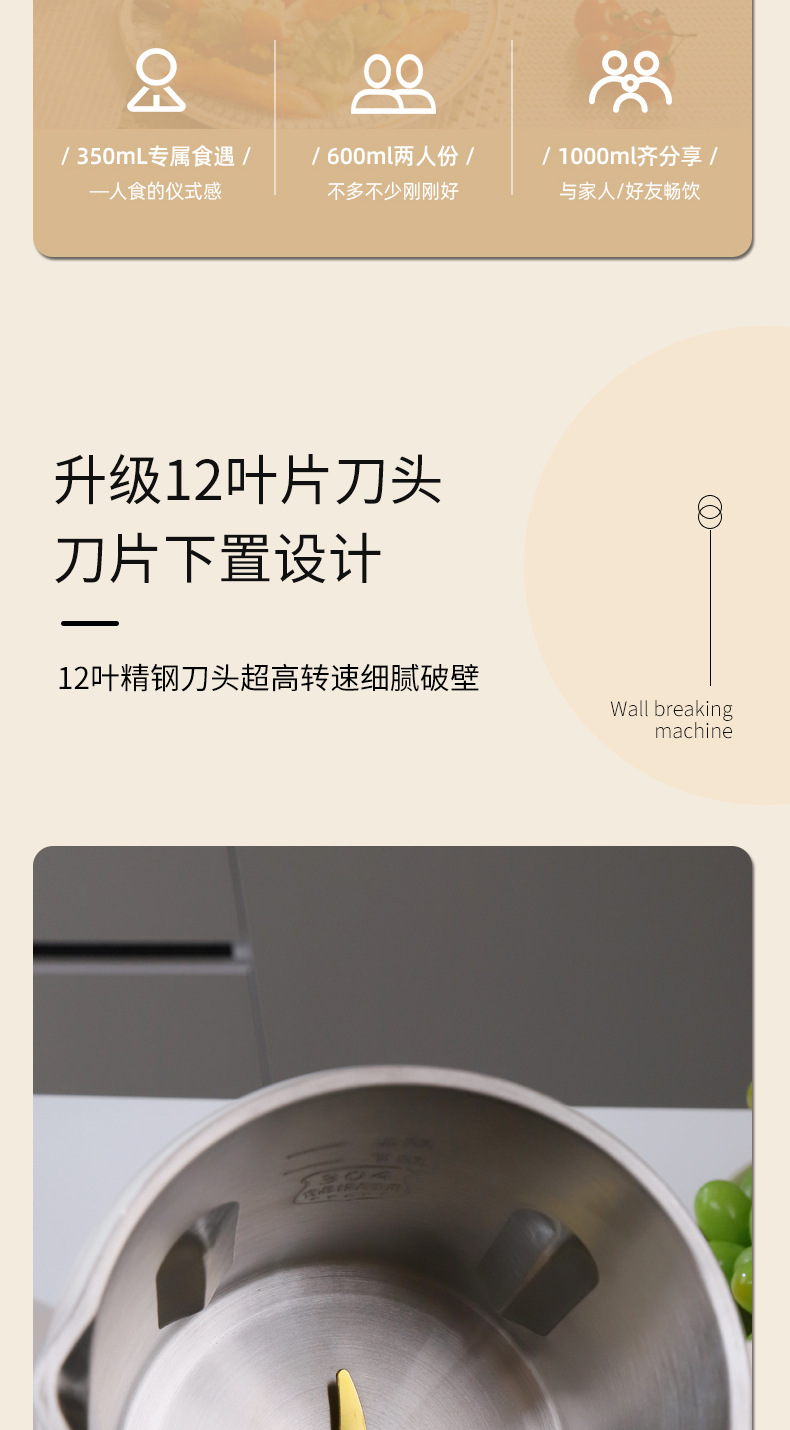 豆浆机3-4人全自动小型家用静音辅食料理机免煮过滤多功能破壁机