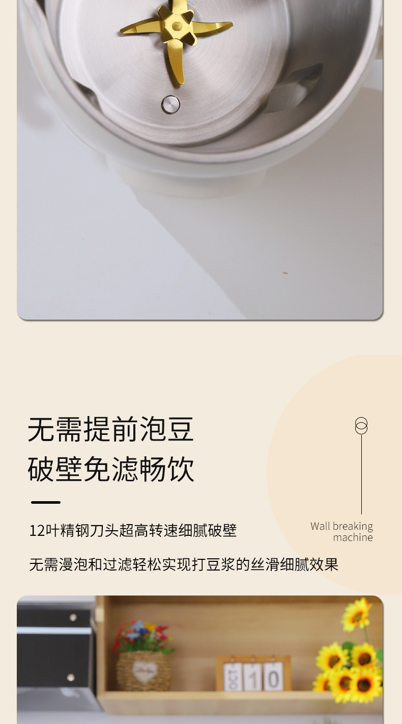 豆浆机破壁机家用无渣免过滤全自动保温辅食干豆直打豆浆机