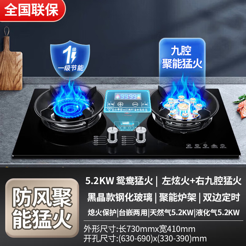 康佳5.2KW猛火燃气灶家用煤气灶双灶嵌入式天然气燃气灶