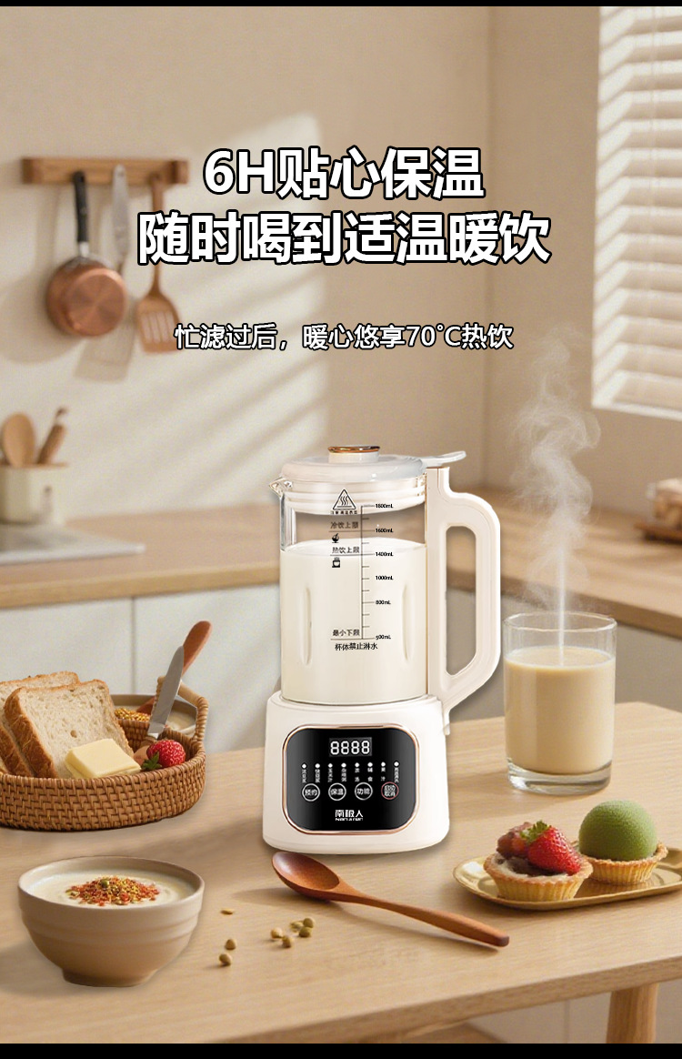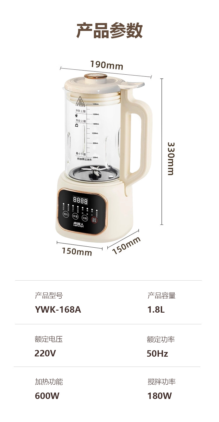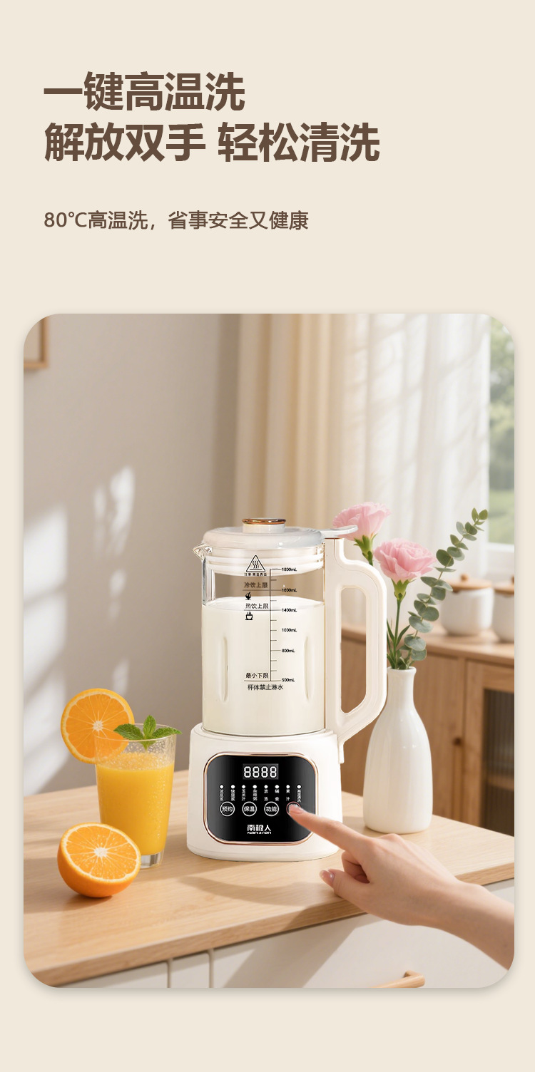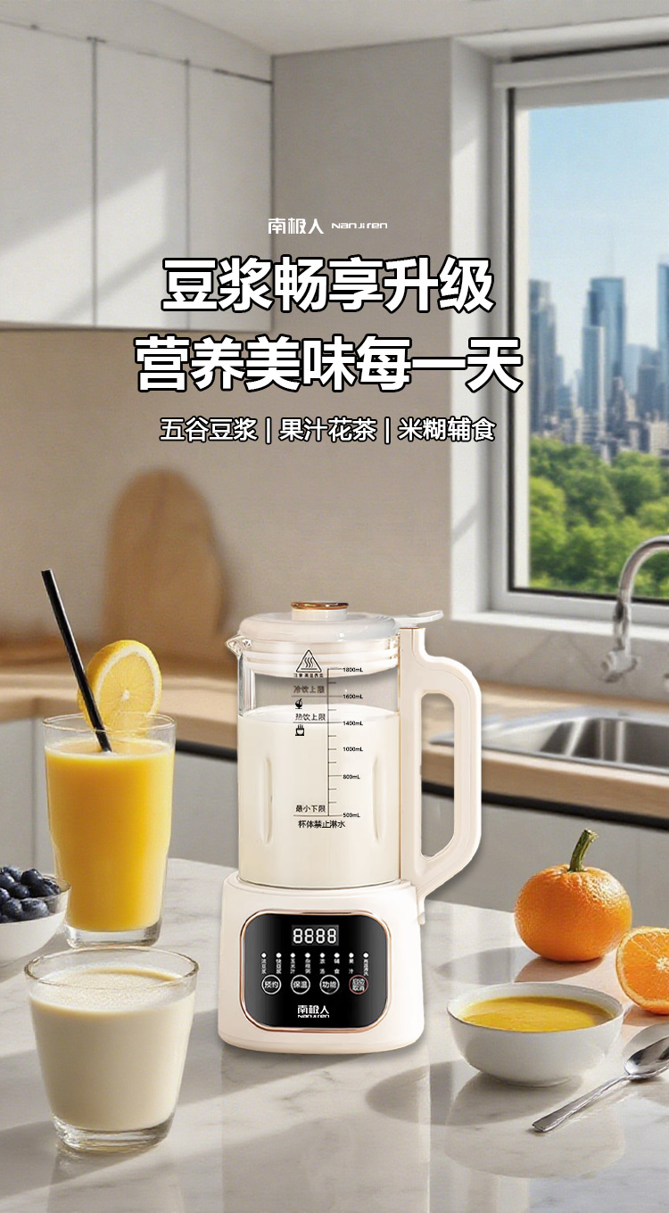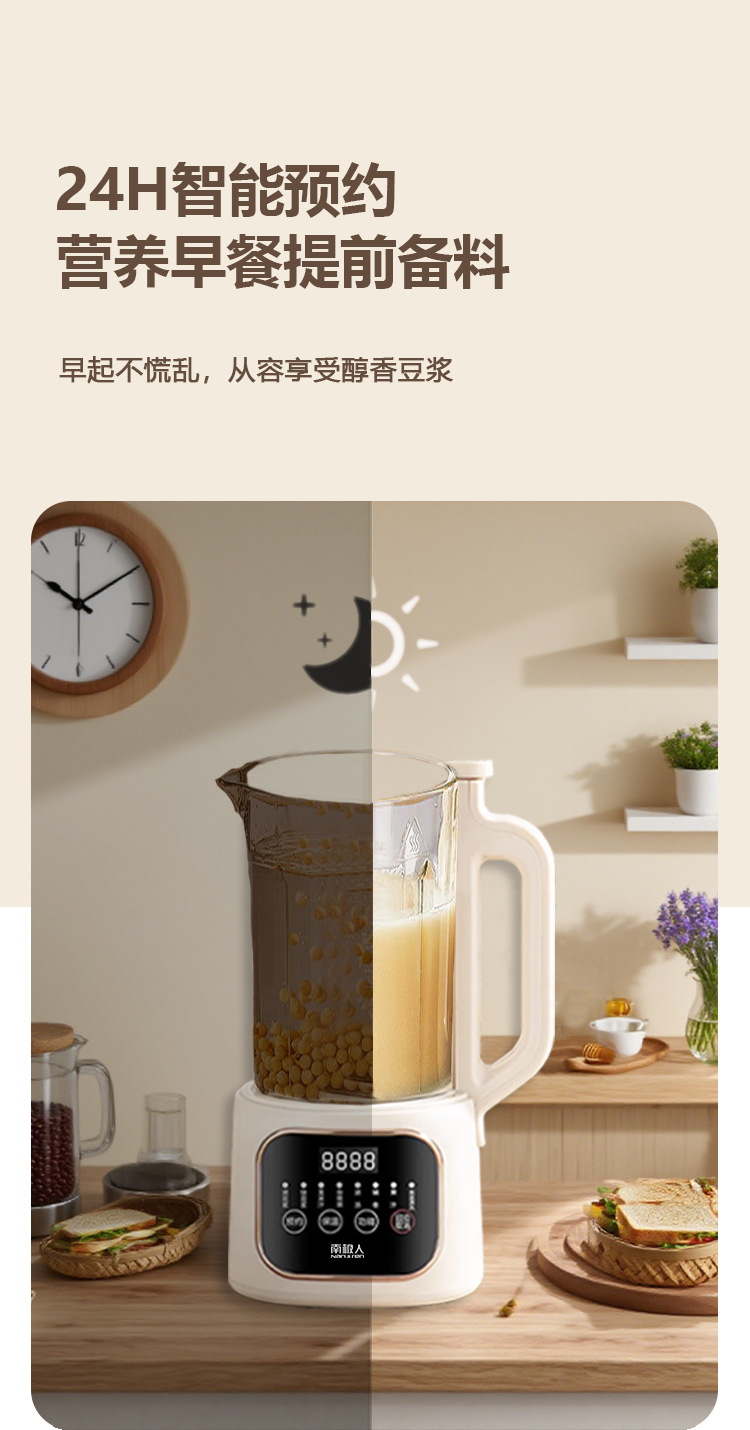 南极人大容量1800毫升智能破壁机迷你豆浆机家用全自动无渣免滤款